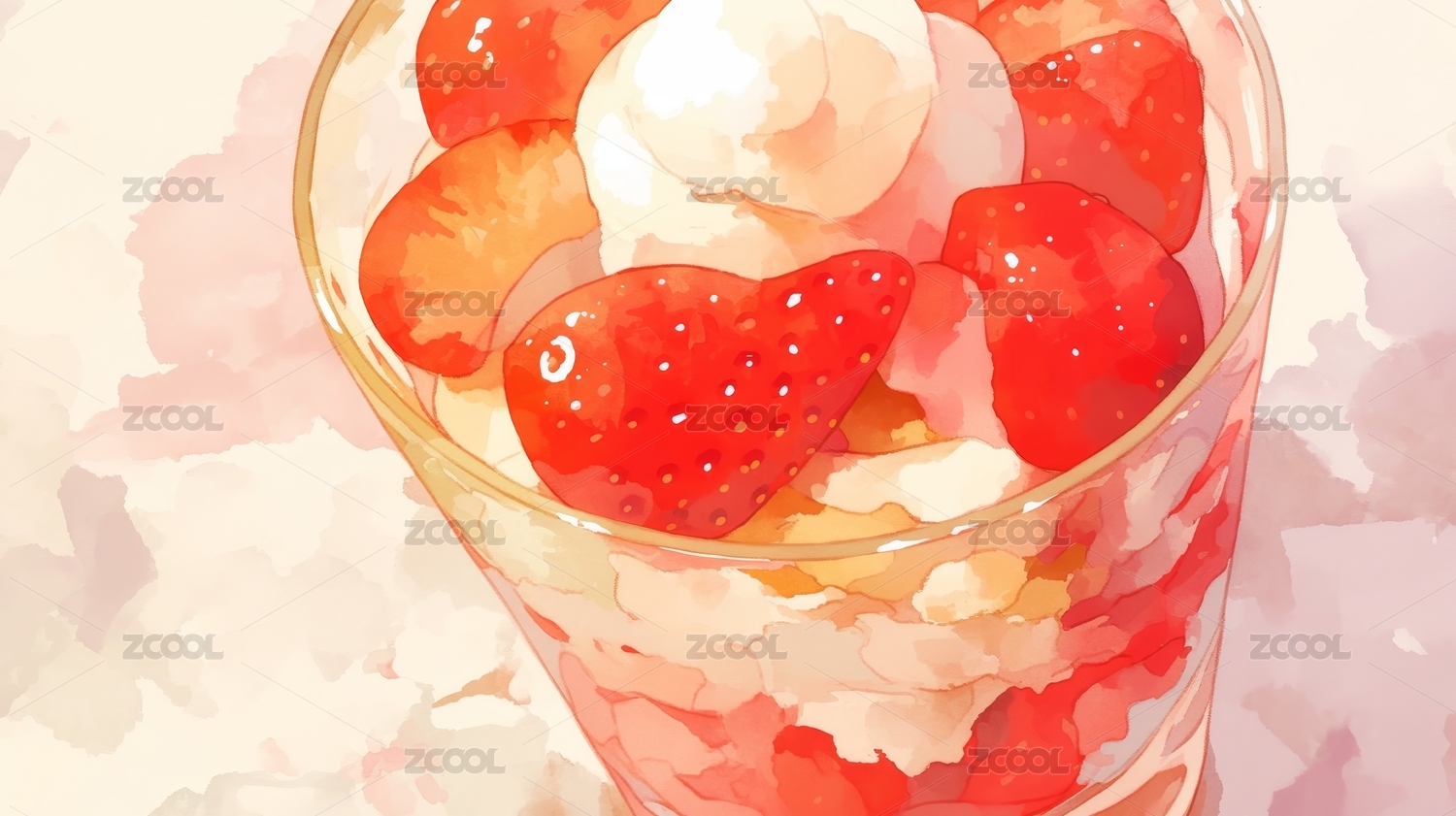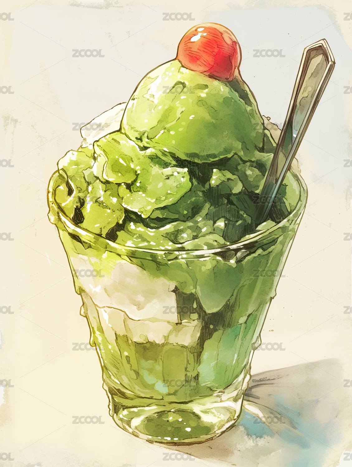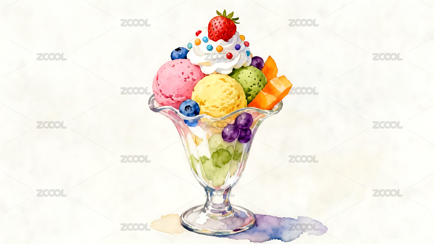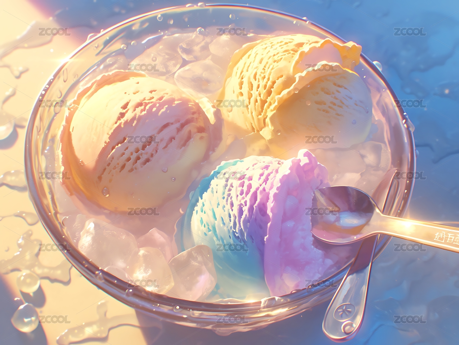 桌面盘中碗中冰激凌球火炬冰激淋插画绘画