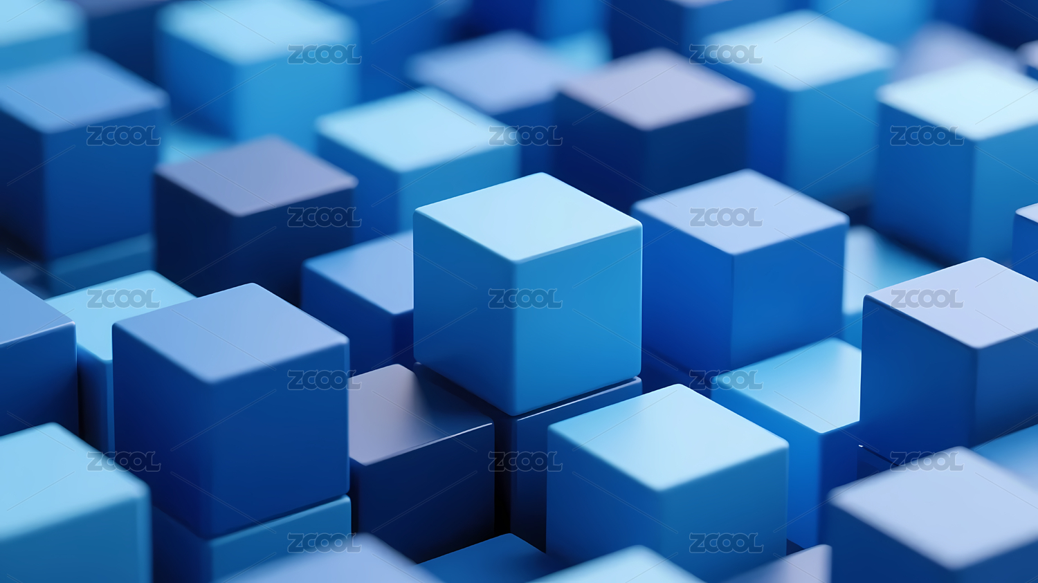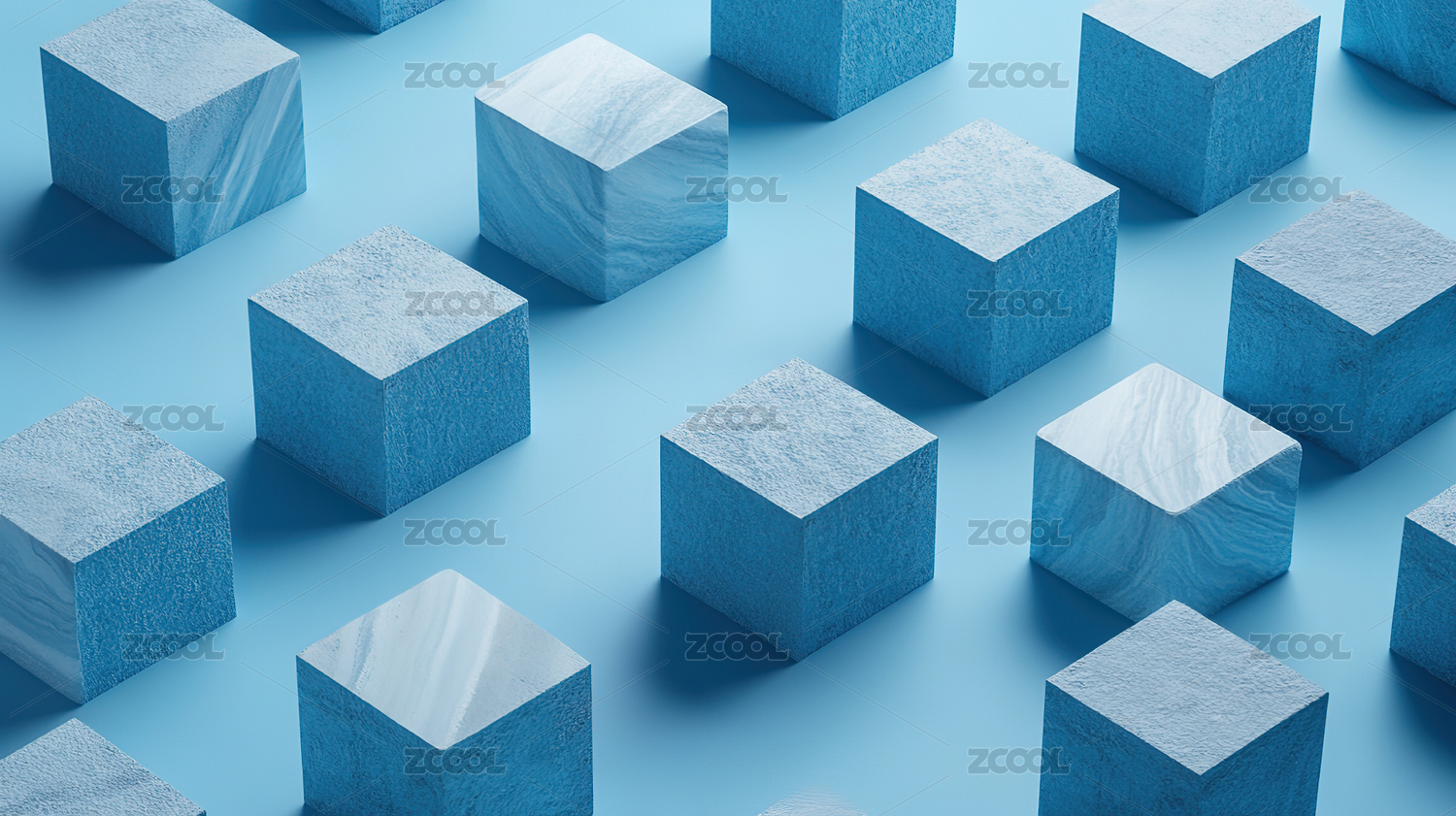 蓝色背景下堆叠的蓝色玩具块的特写镜头