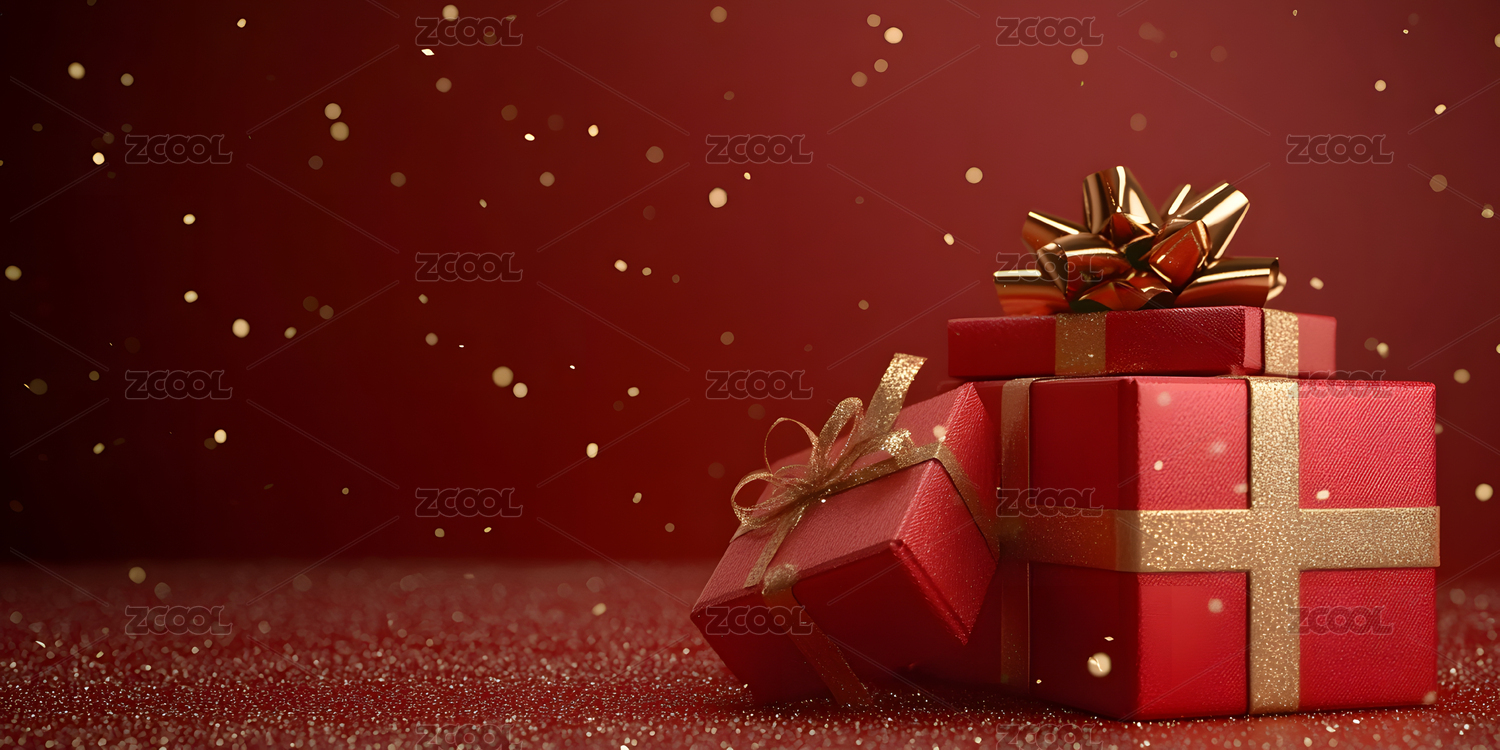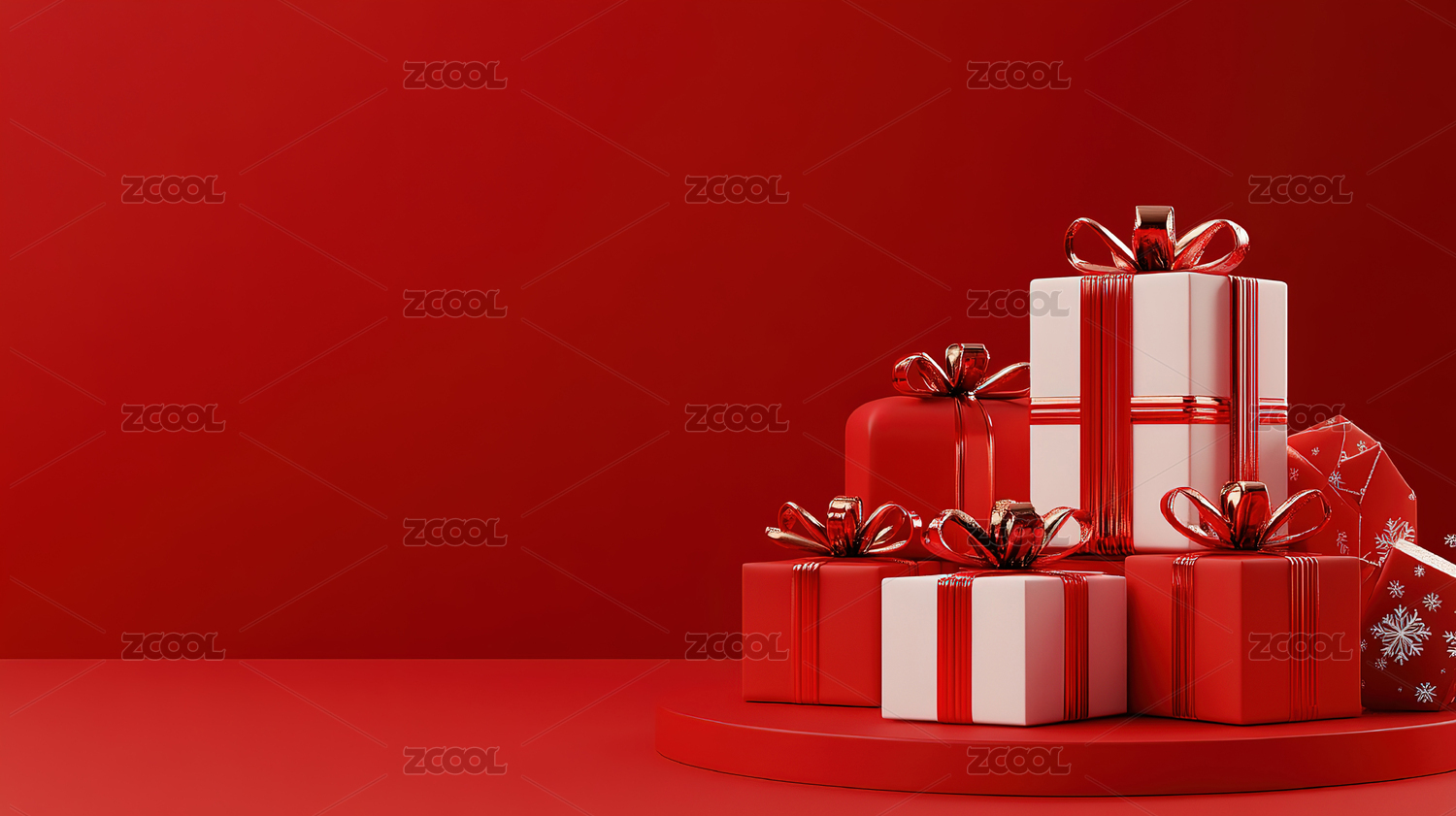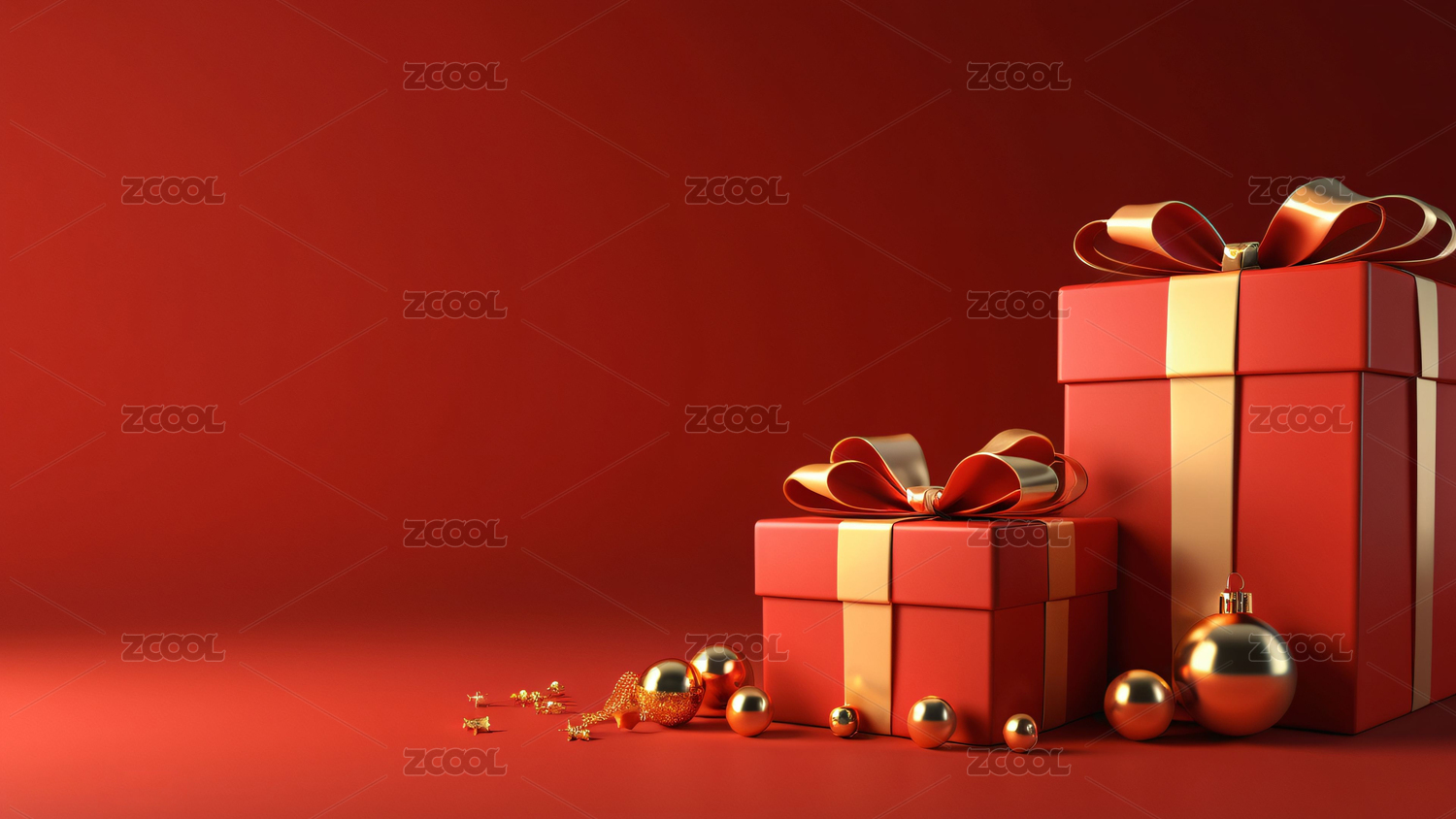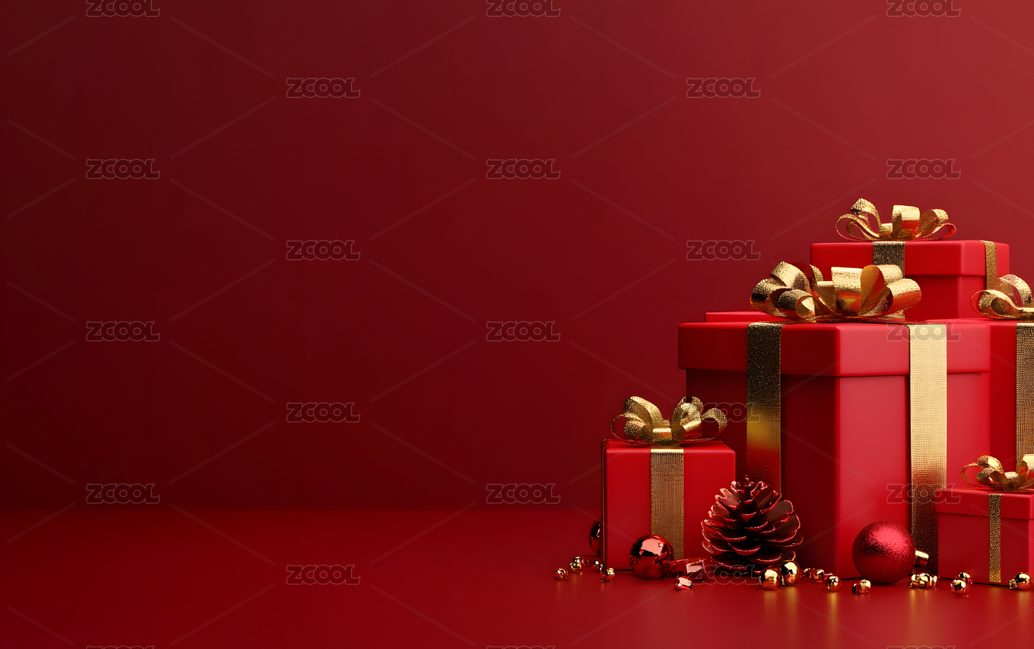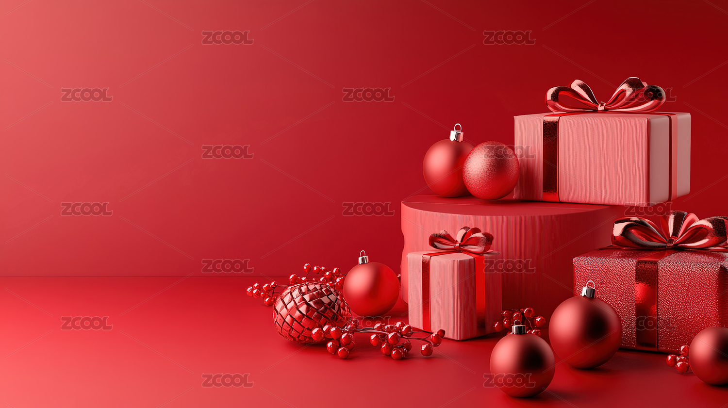 无人,AI数字艺术,圣诞节,圣诞装饰,背景,红色,节日,圣诞树,圣诞礼物,装饰