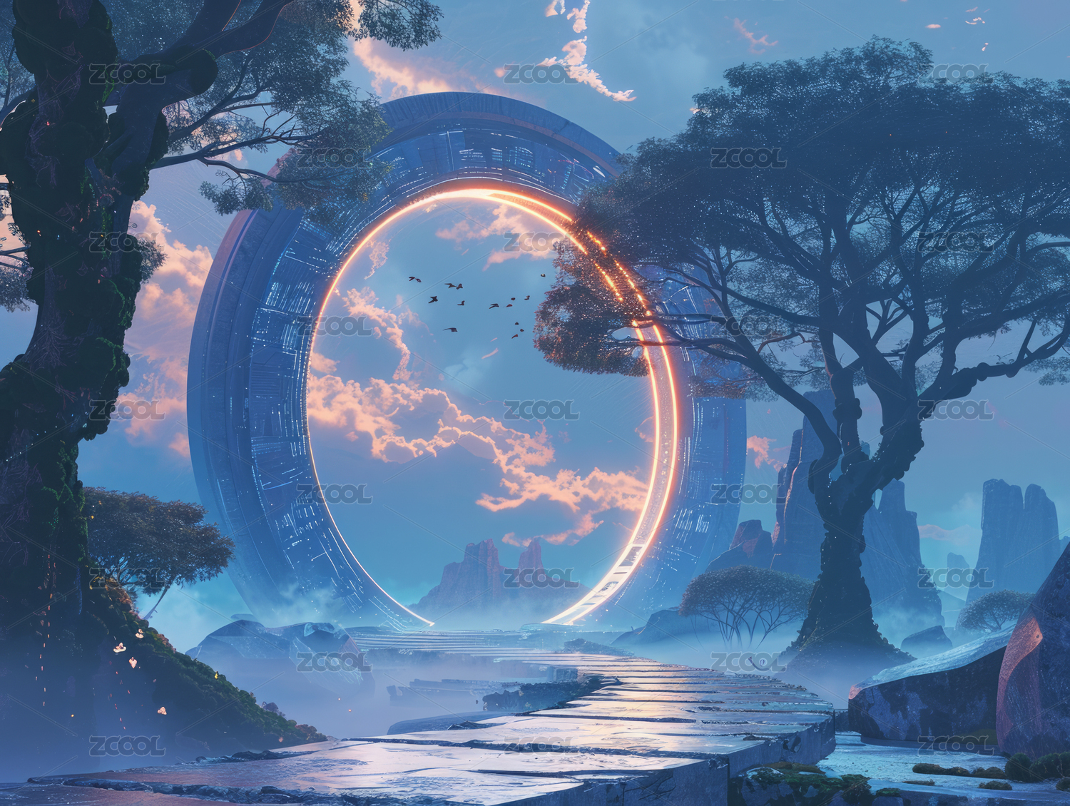 科幻未来传送门3D插画