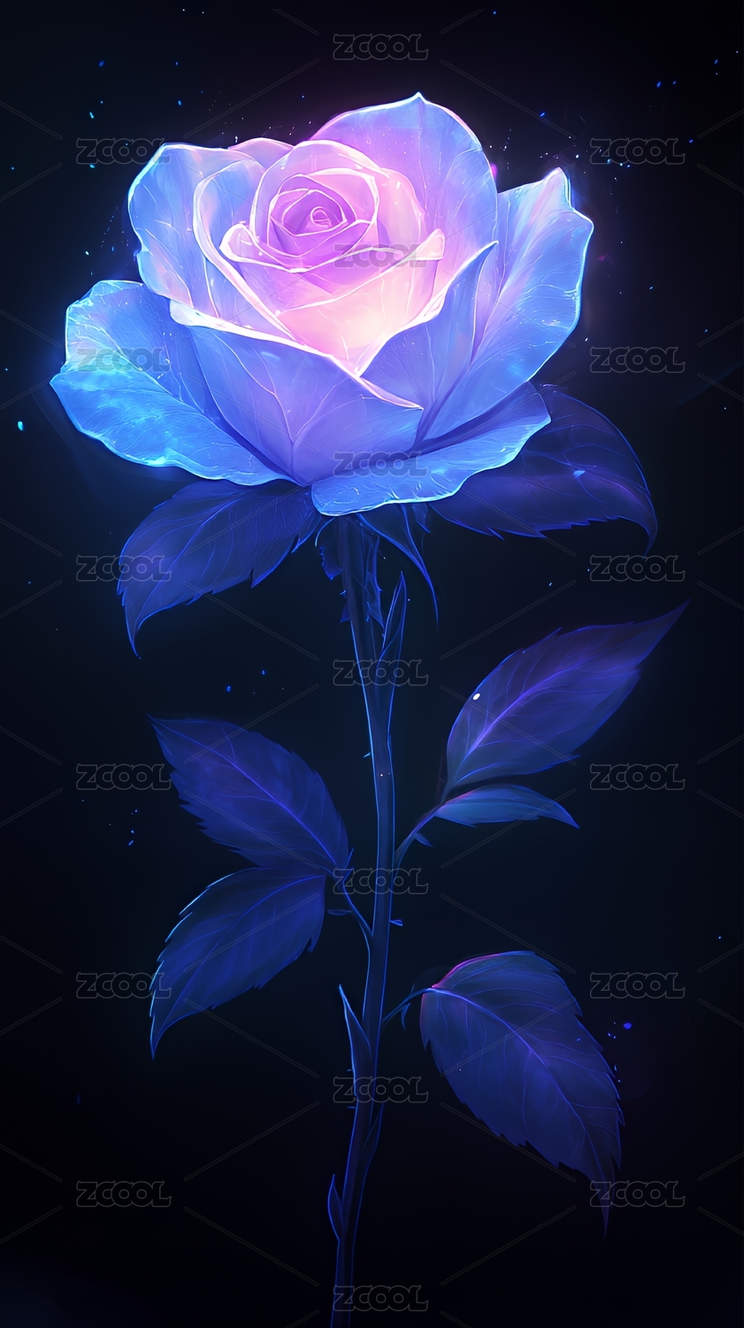 原画,奇幻,神话,黑底,发光,花朵,仙草,首饰,神花,宝石