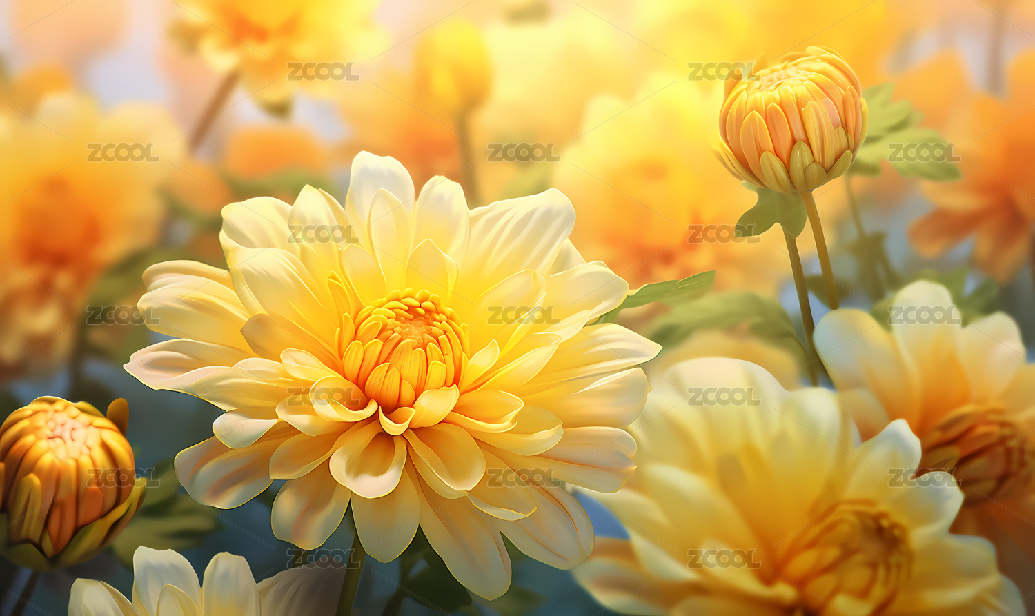 时尚山谷金黄色繁荣茂盛的菊花3D立体插画