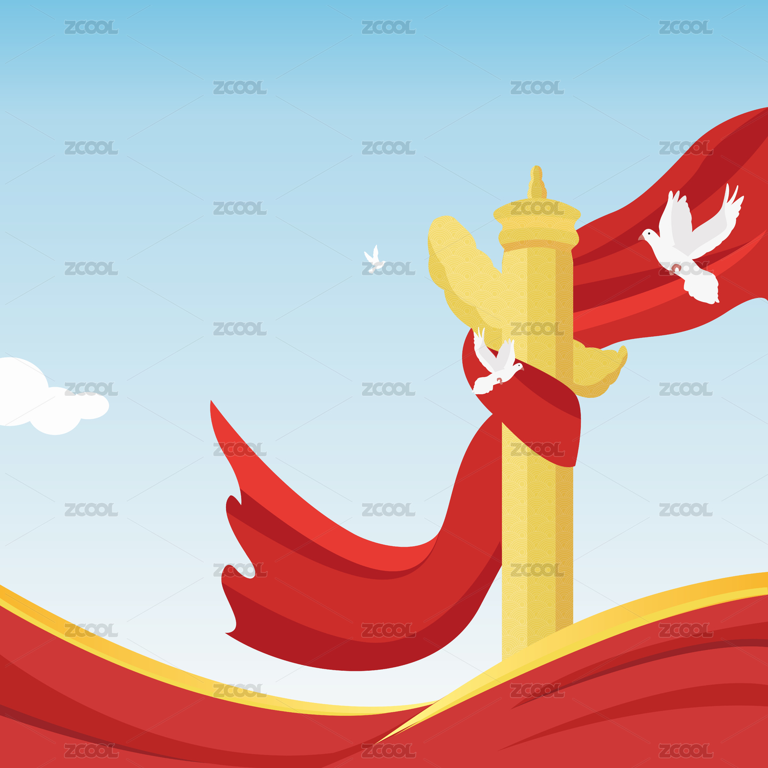 蓝天白云通用红色背景动感红旗红布线条矢量