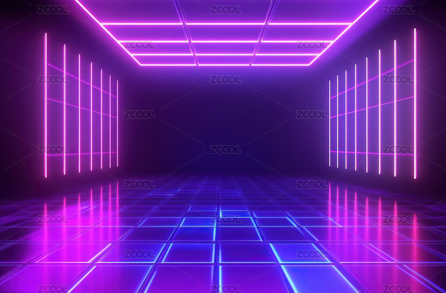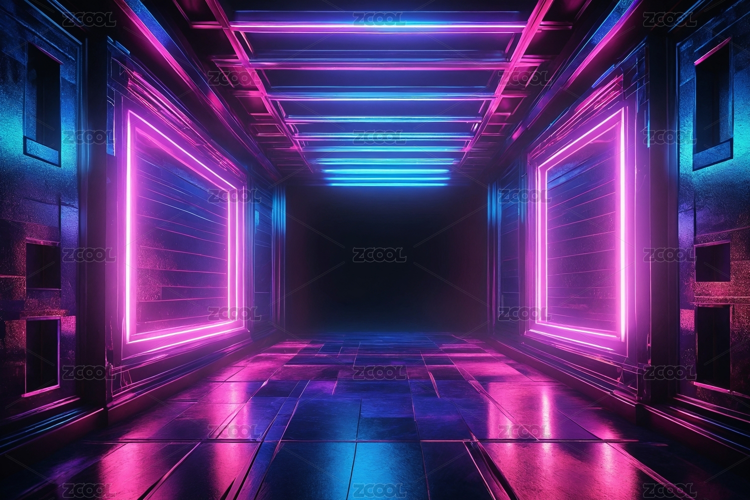 抽象霓虹灯光建筑空间走廊背景时尚朋克摇滚