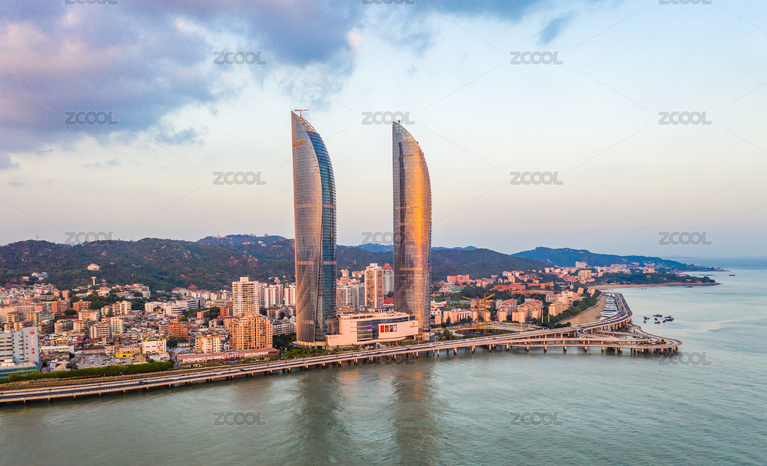 厦门城市建筑风光 双子塔 鼓浪屿 城市风