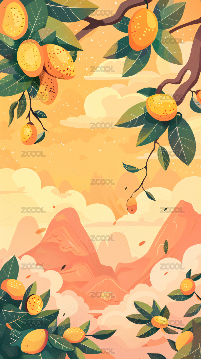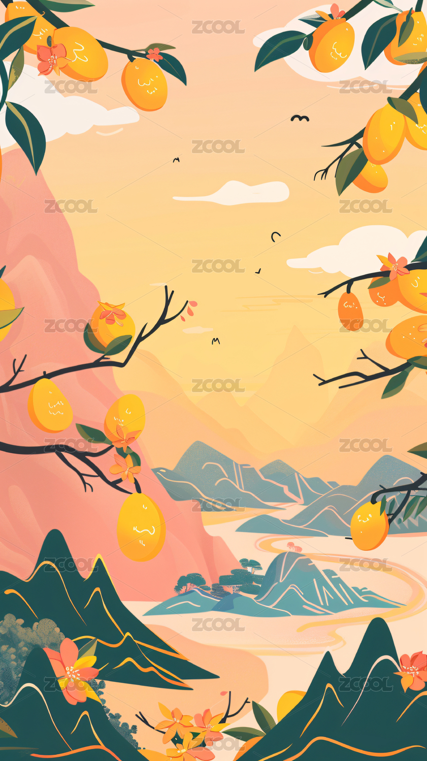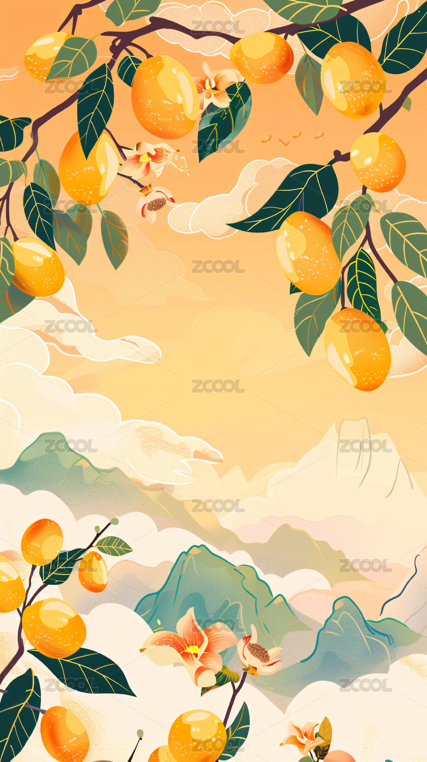 清新插画秋天节气柿子丰收墙在在梯子上凉爽