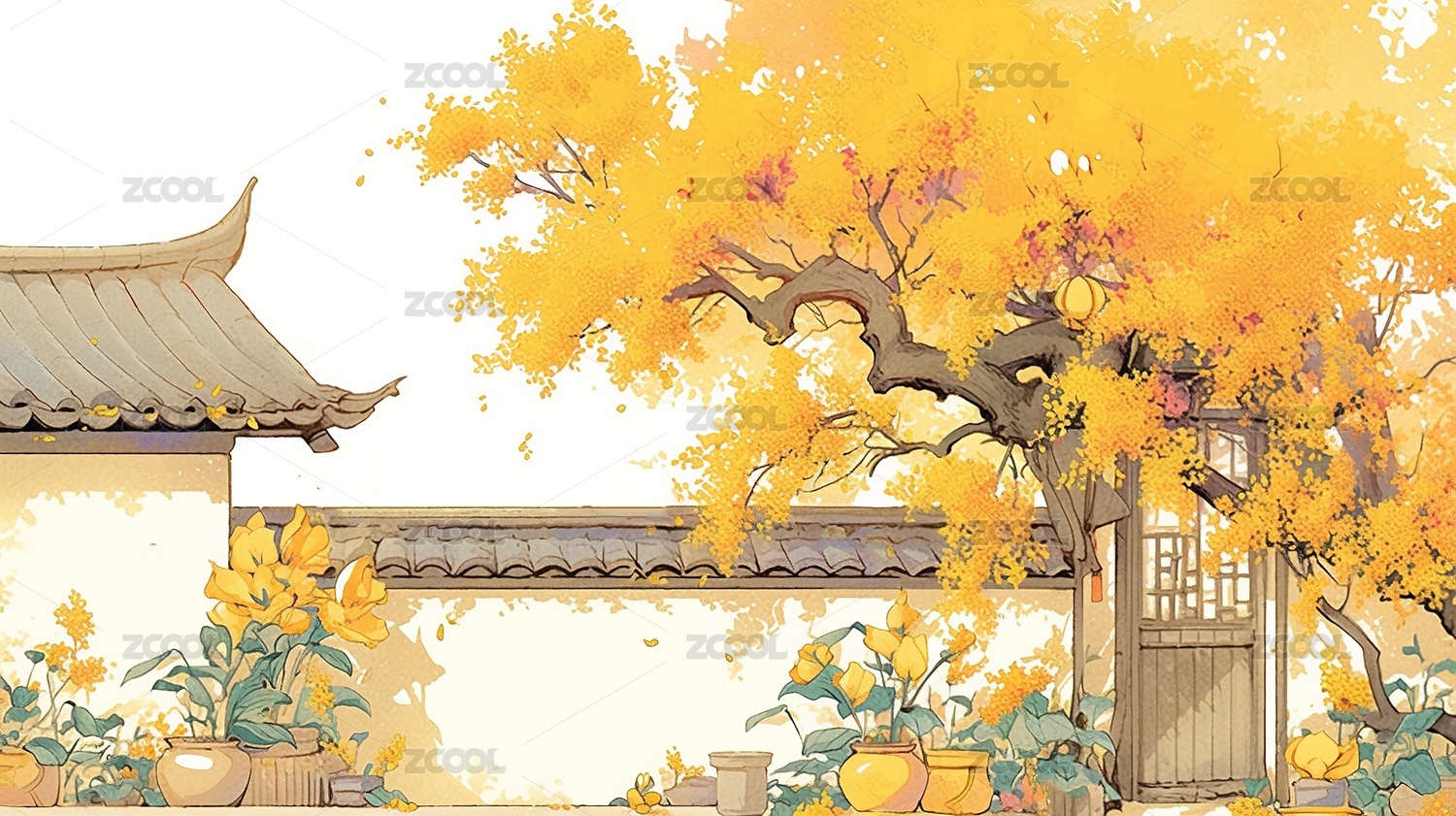 小满,自然,户外,秋天,秋分,立秋,插画,卡通,AIGC202402,乡村
