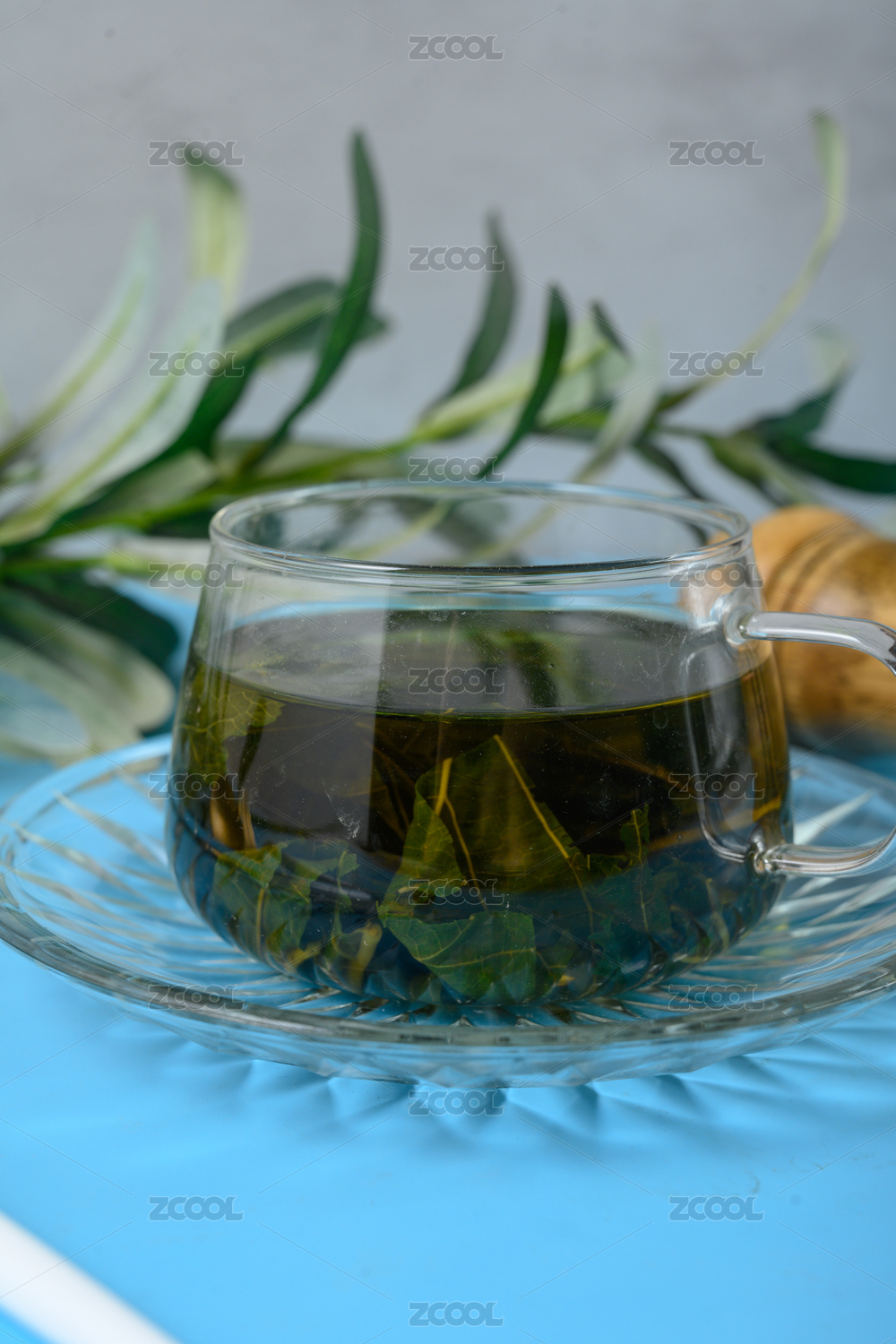 桌面上的杯子里的甘甜可口的赶黄草茶