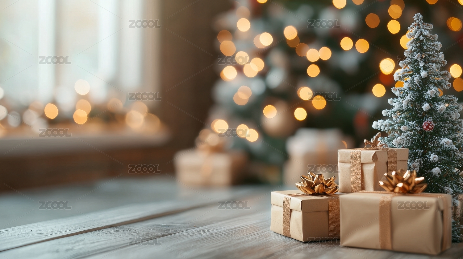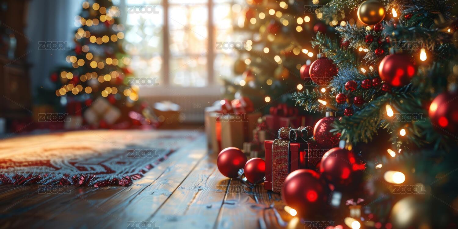 圣诞节在装饰过的圣诞树下在舒适的客厅里