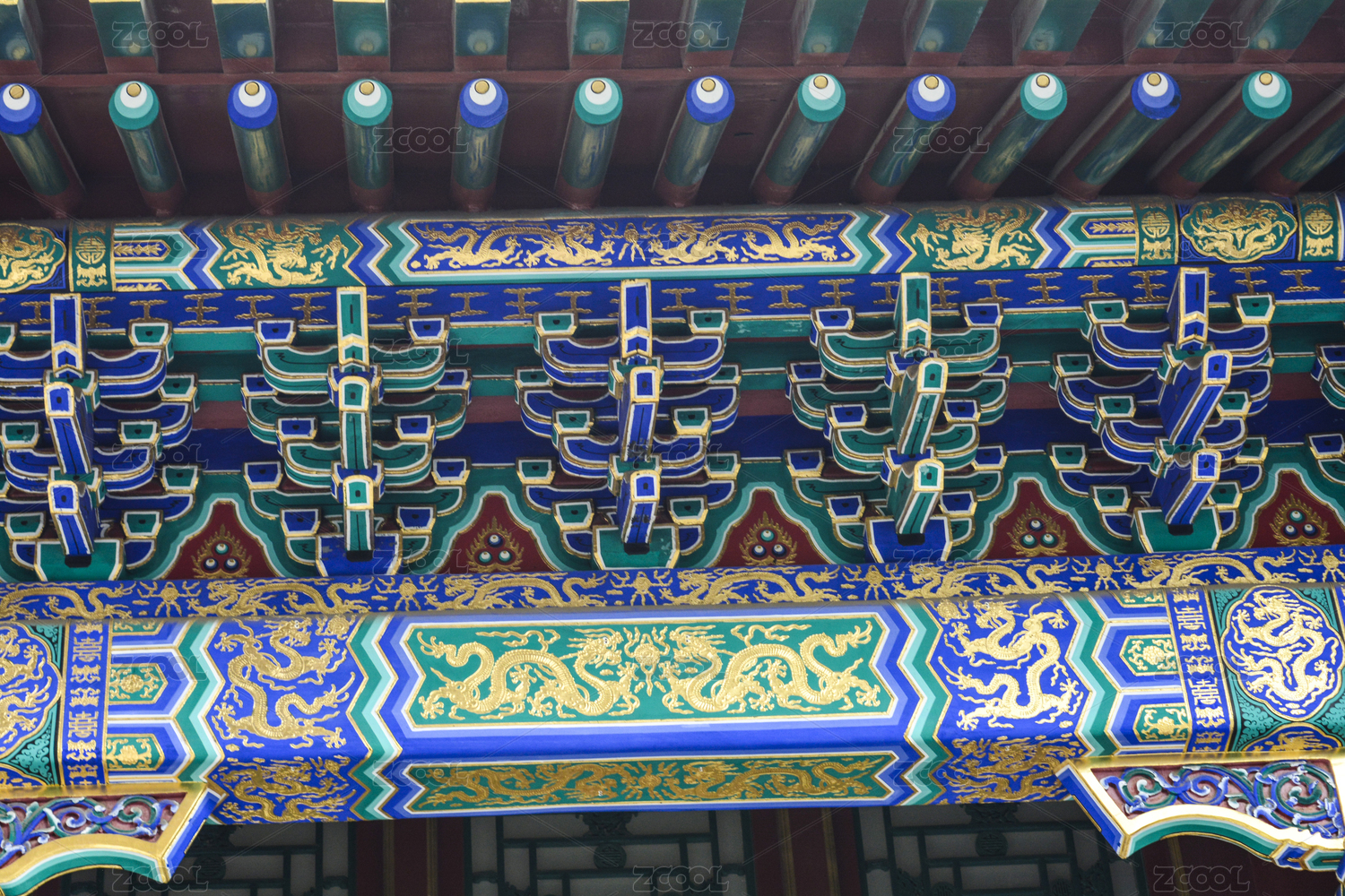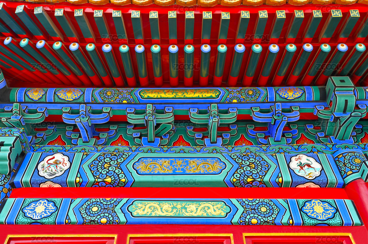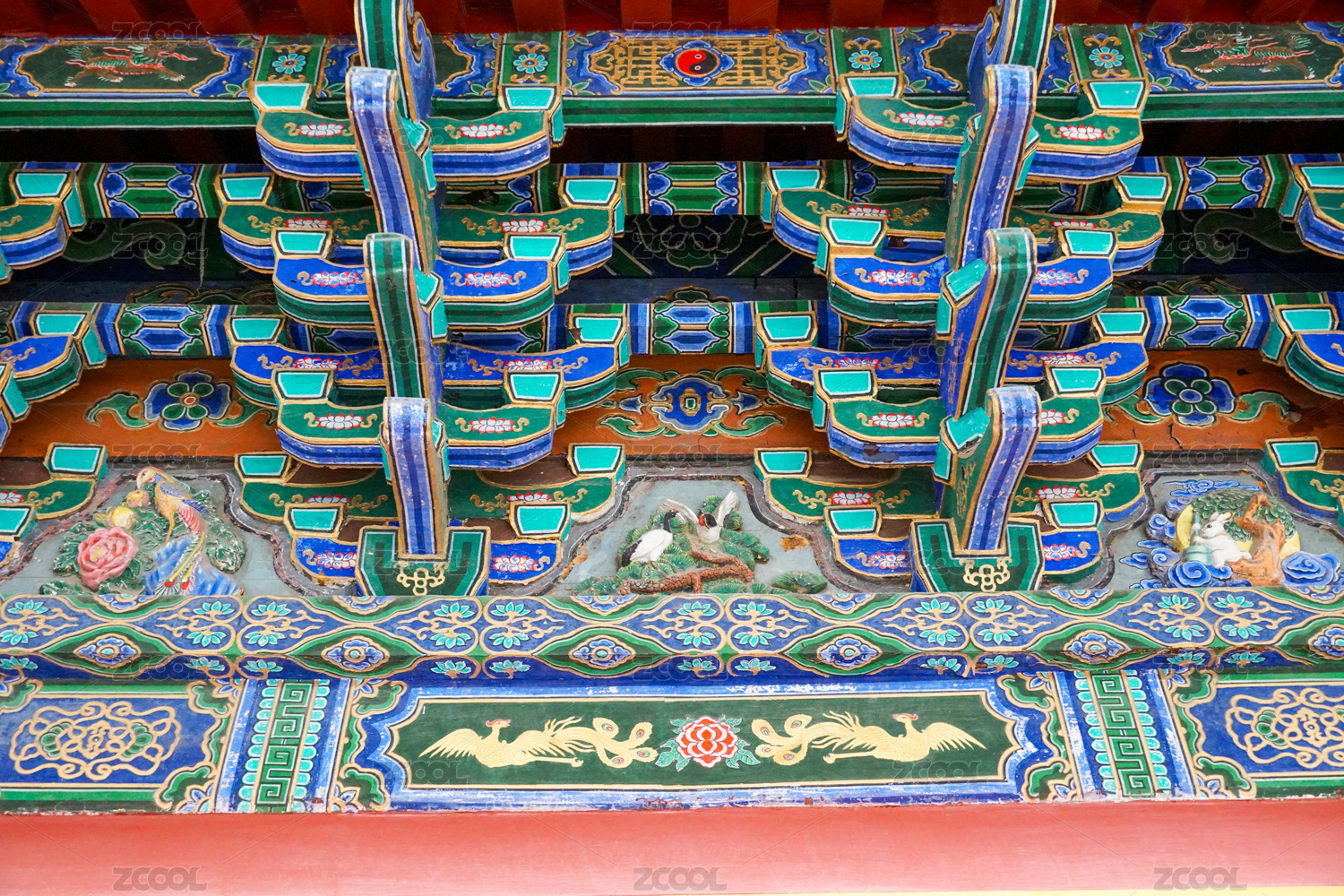 北京雍和宫明清皇家古建筑内的彩绘横梁