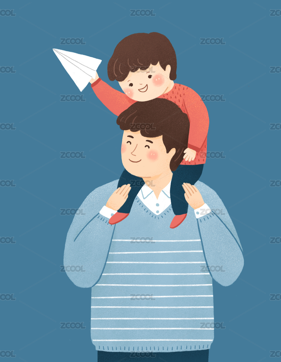 卡通手绘父爱如山父亲节父亲抱儿子插画