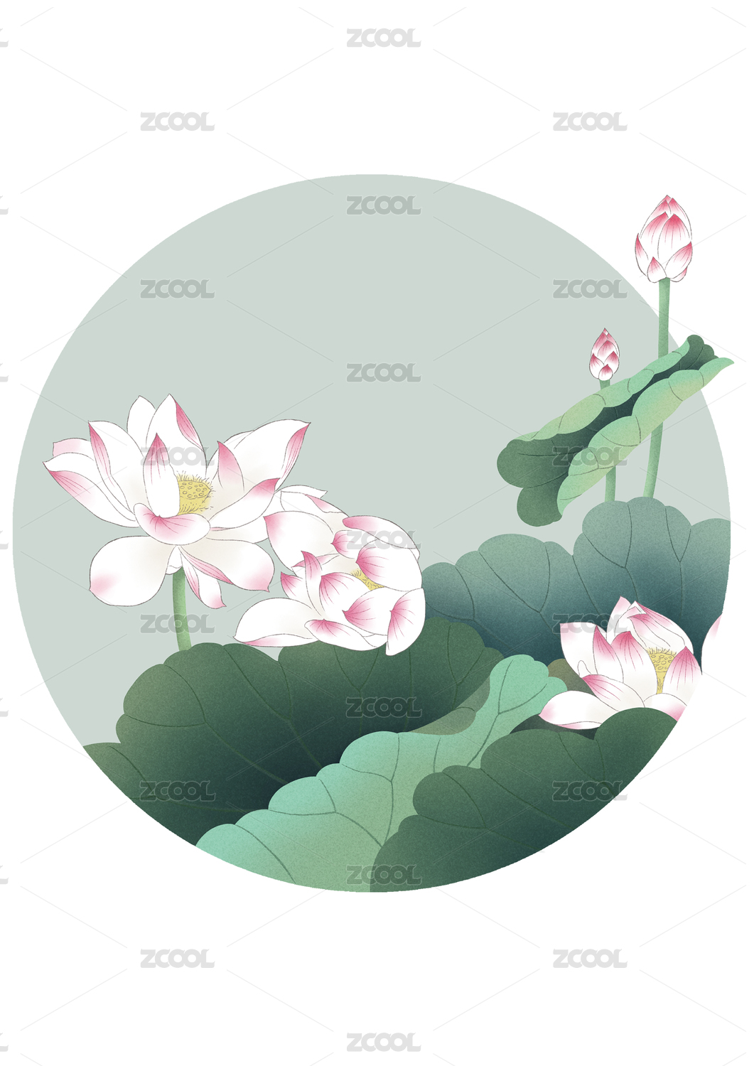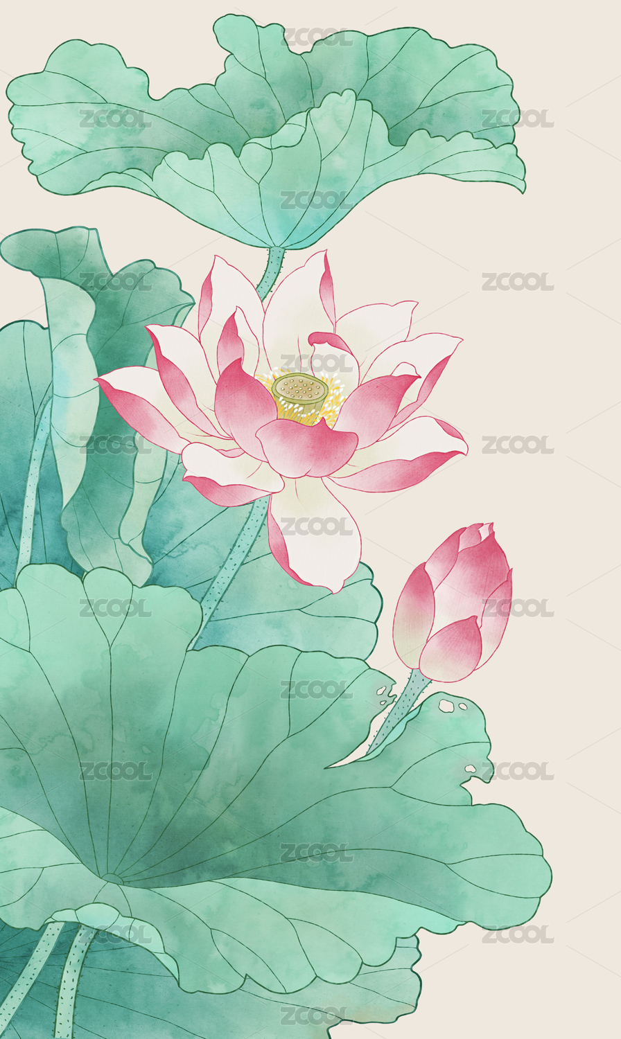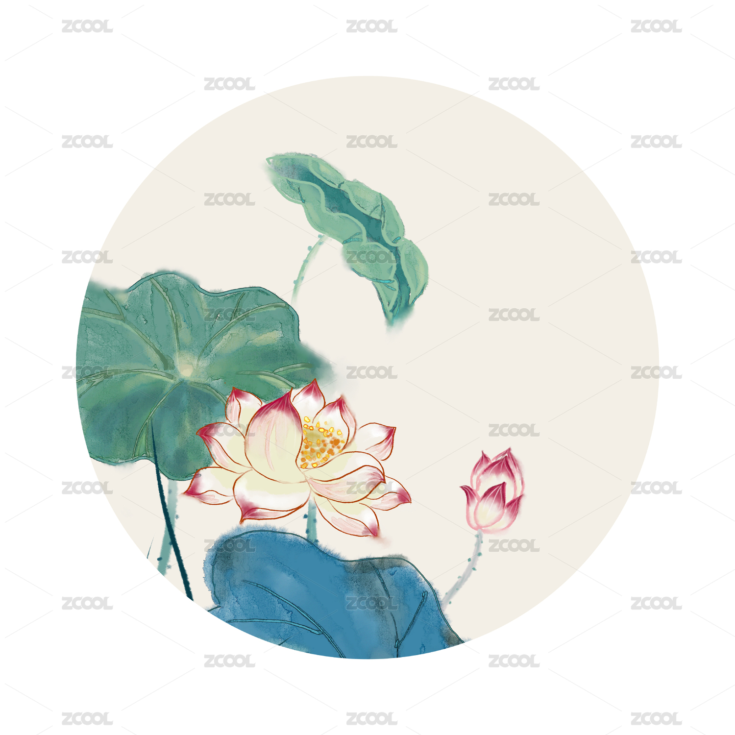 荷花水墨水彩中国风工笔画水墨意境荷花插画