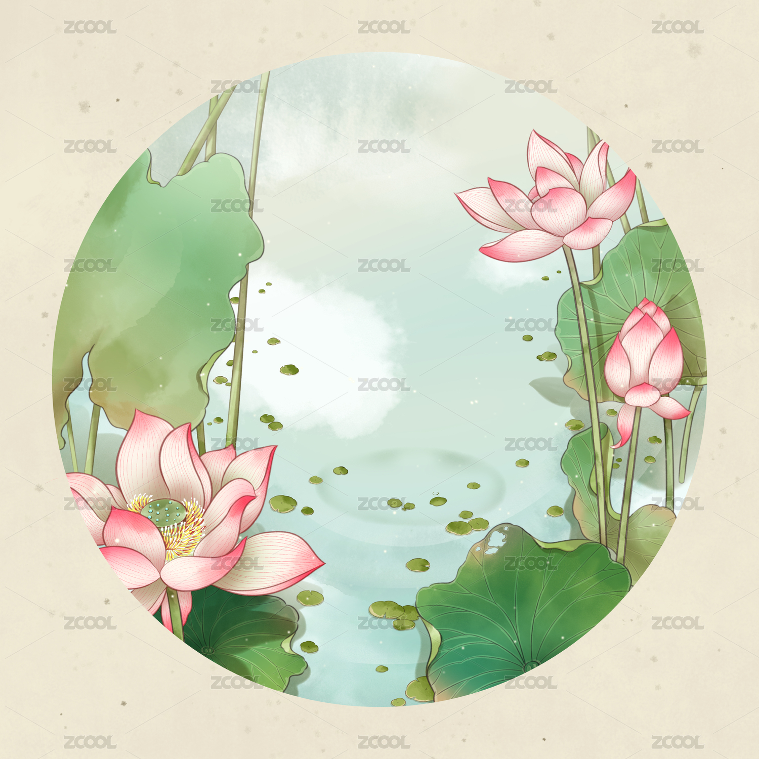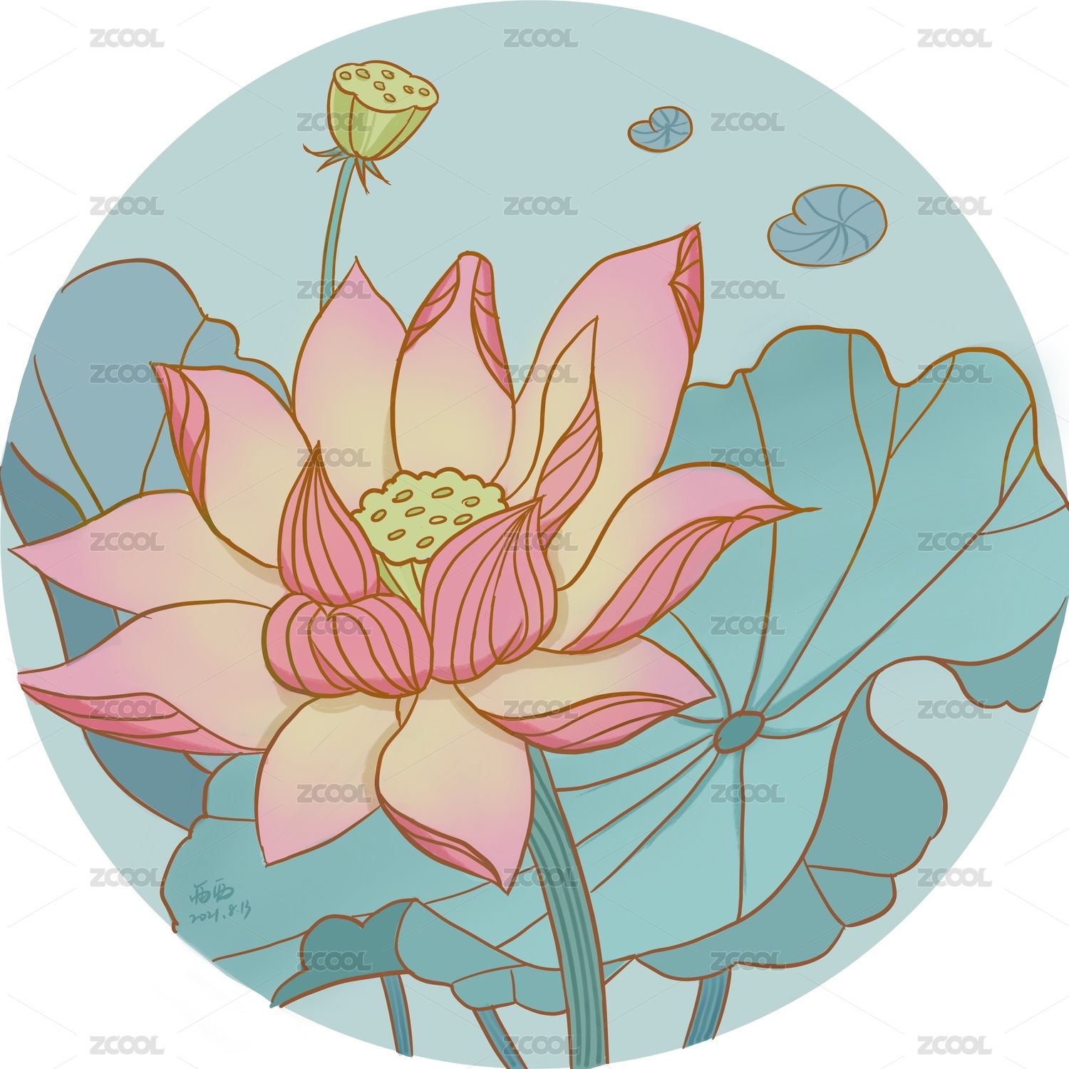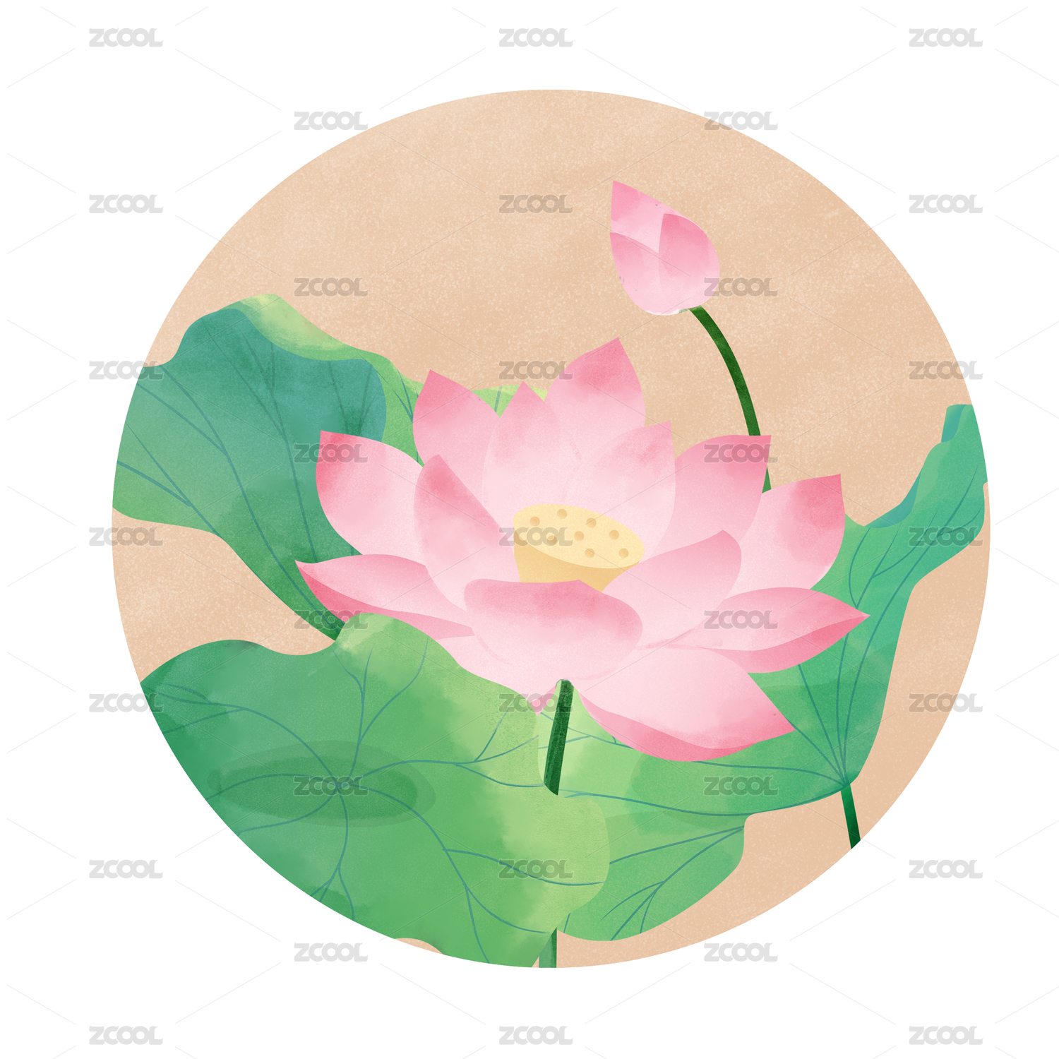 荷花水墨水彩中国风工笔画水墨意境荷花插画