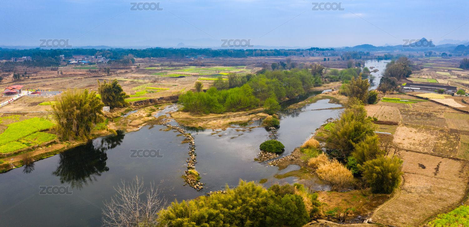 桂林冬季漓江河床风光航拍
