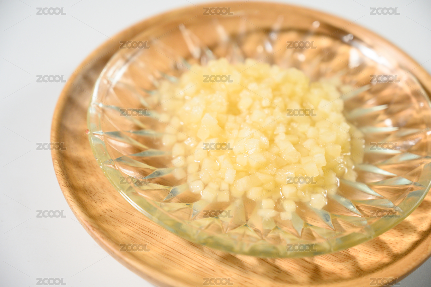 桌面上的盘子里的美味可口的糖水蜜桃肉