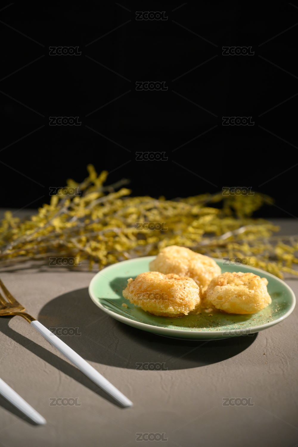 桌面上的盘子里的美味可口的炸杏鲍菇