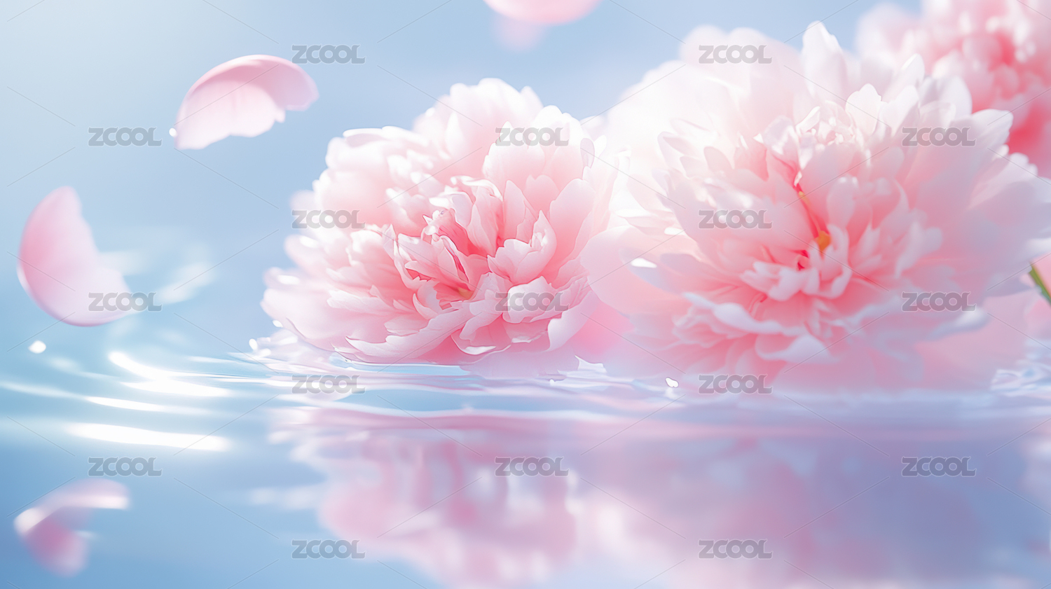 时尚浪漫漂浮水面粉色玉兰花3D立体插画