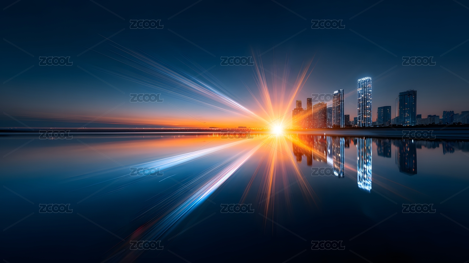 现代建筑,都市风光,未来感,蓝调,极简,高效,未来城市,清新,视觉效果,光影轨迹