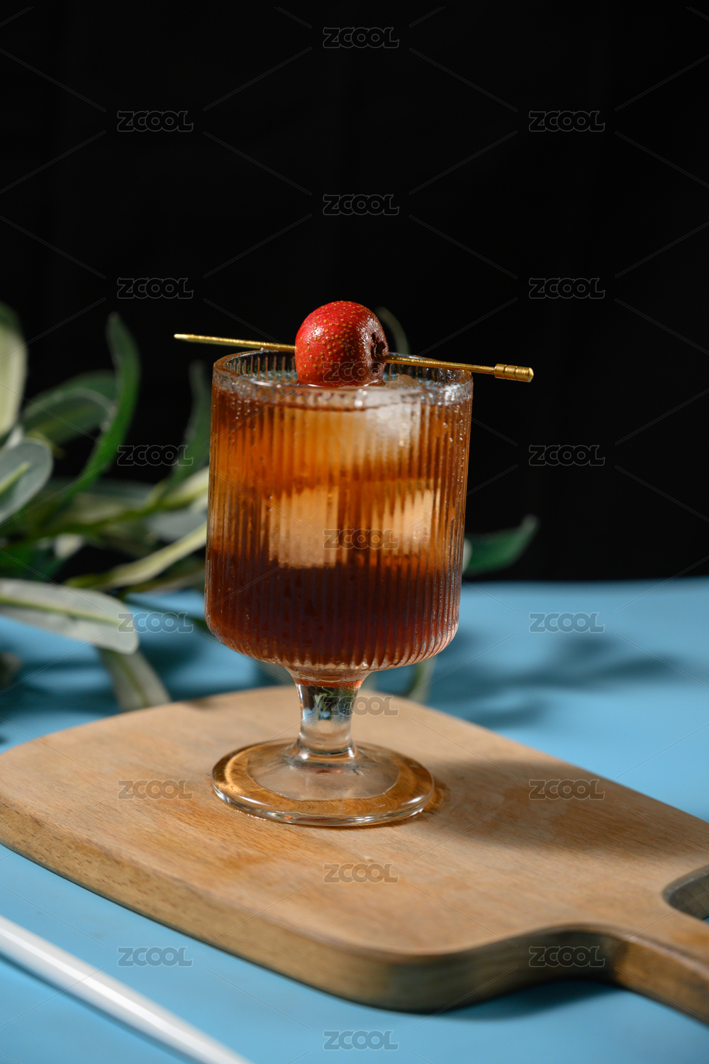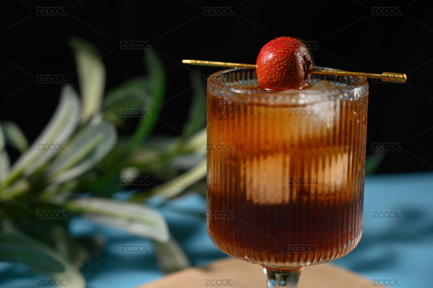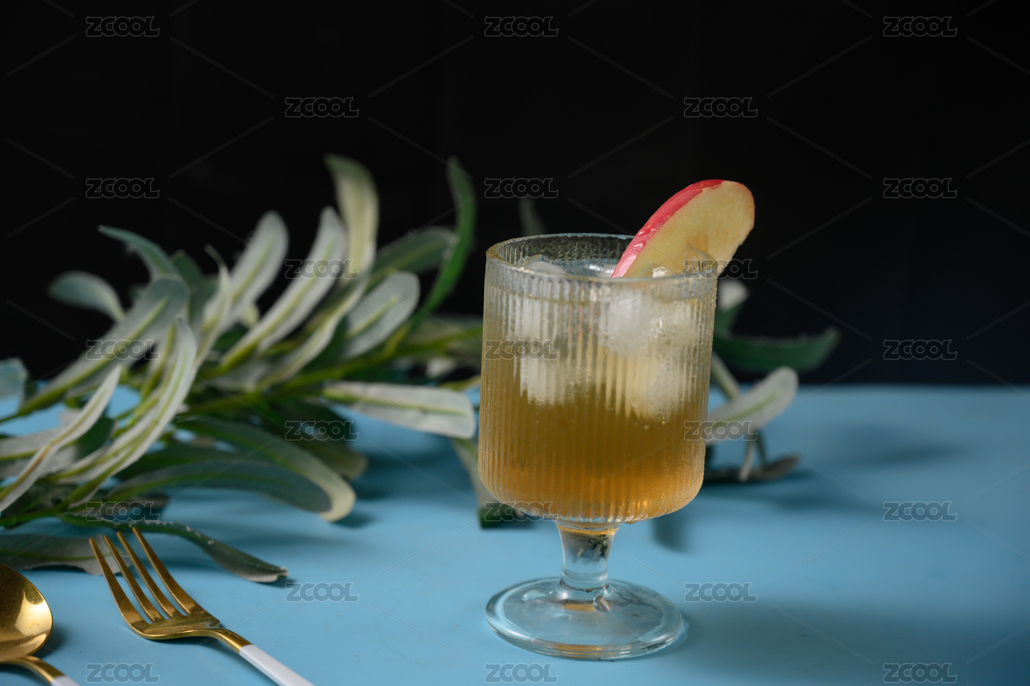 桌面上的杯子里的甘甜可口的冰木橘茶