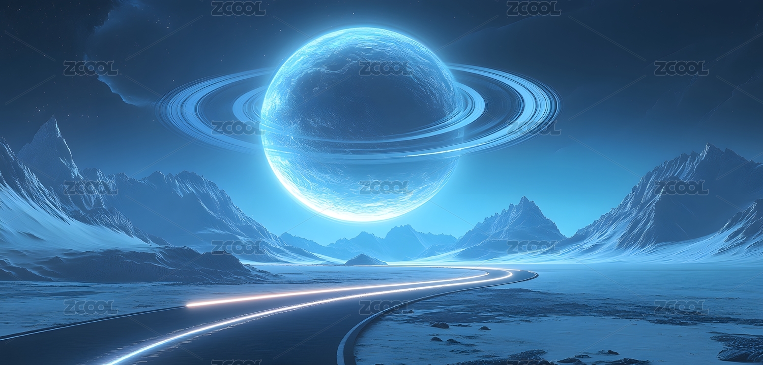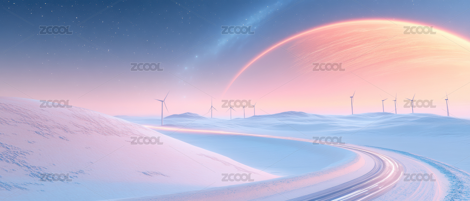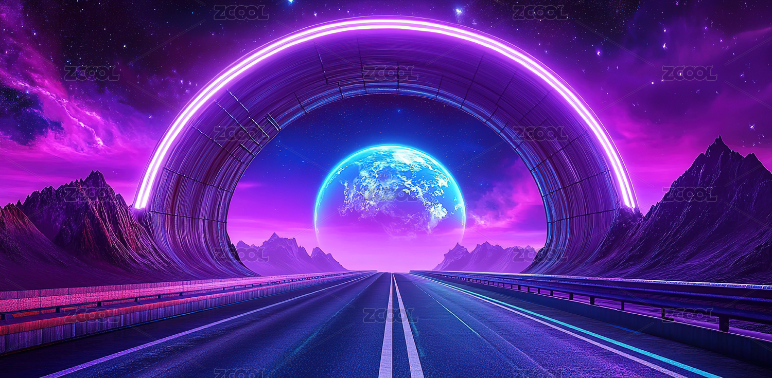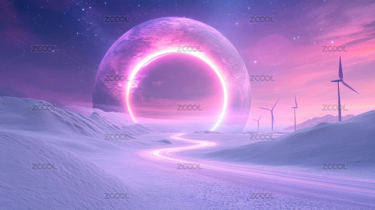 未来,天空,科技,梦幻,自然,霓虹,道路,星球,风车,紫色