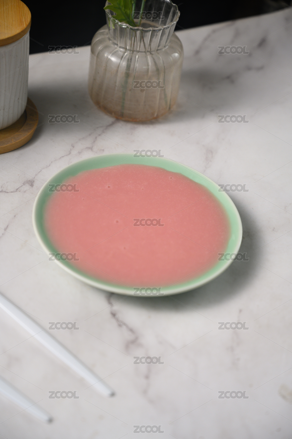 桌面上的盘子里的美味可口的浓缩芭乐汁