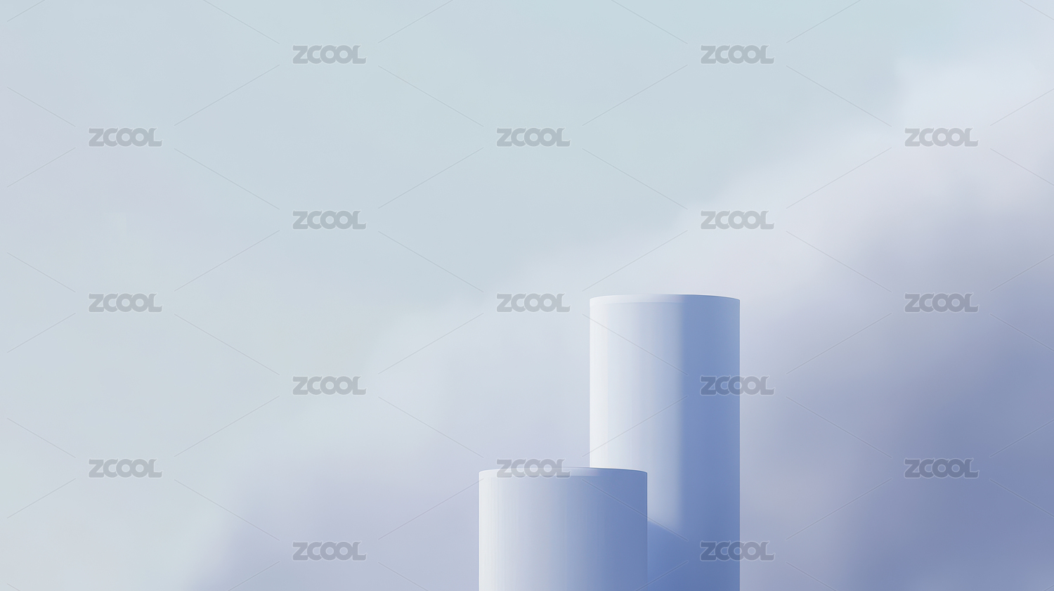 蓝天白云下的白色圆柱