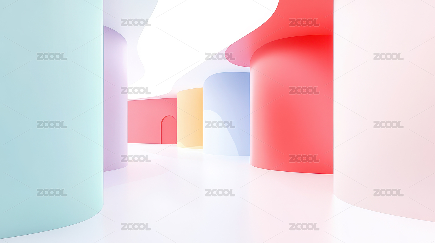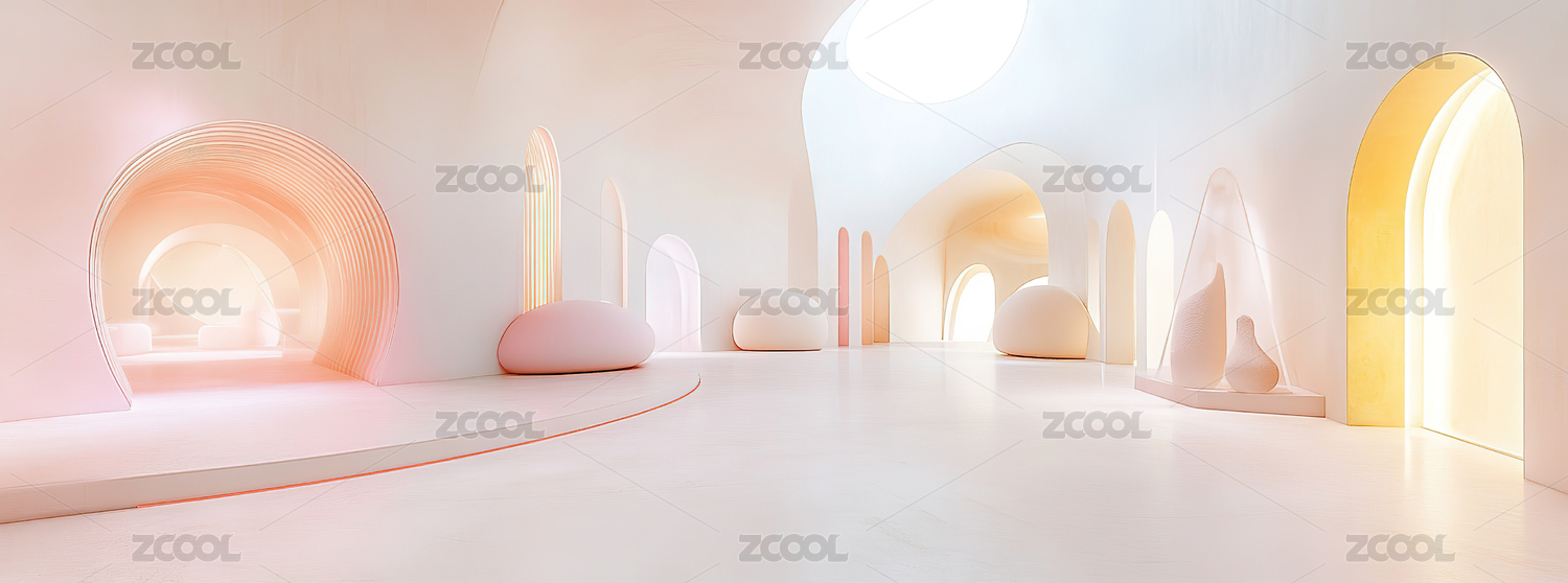 白色, 简约,未来主义, 现代, 光线, 创意, 室内设计, 几何形状, 彩虹色, 走廊