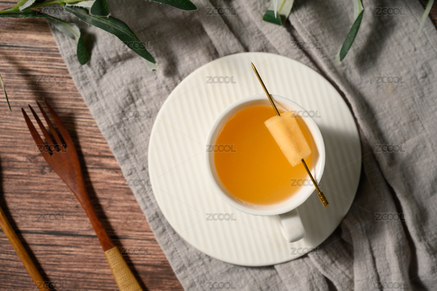 桌面上的杯子里的甘甜可口的木橘茶