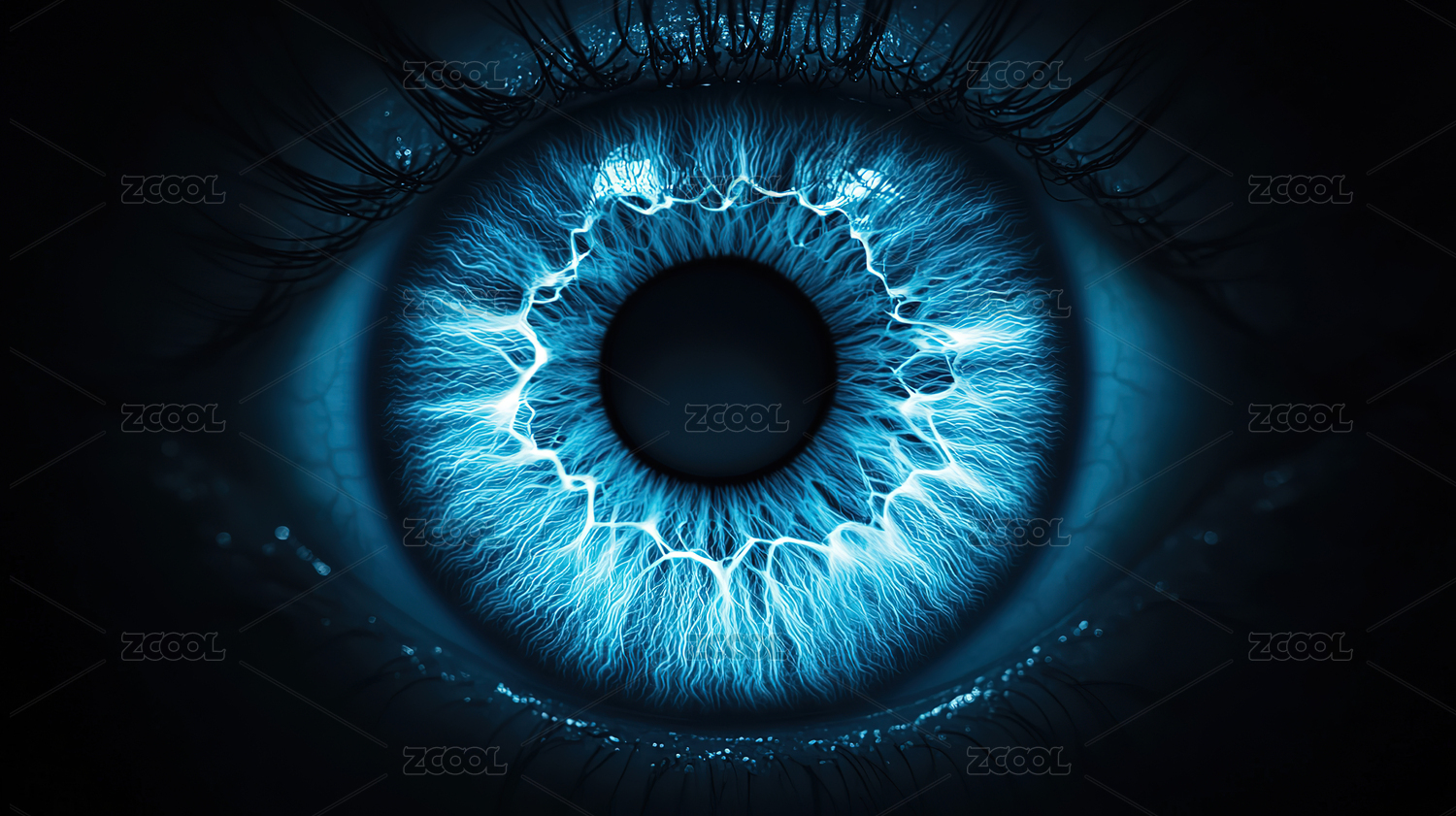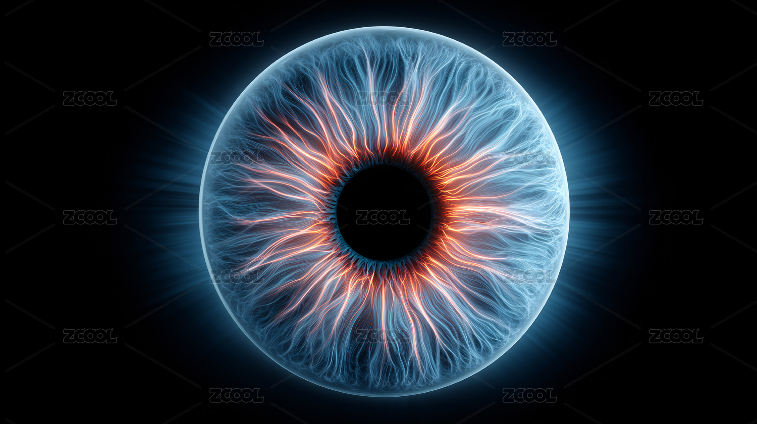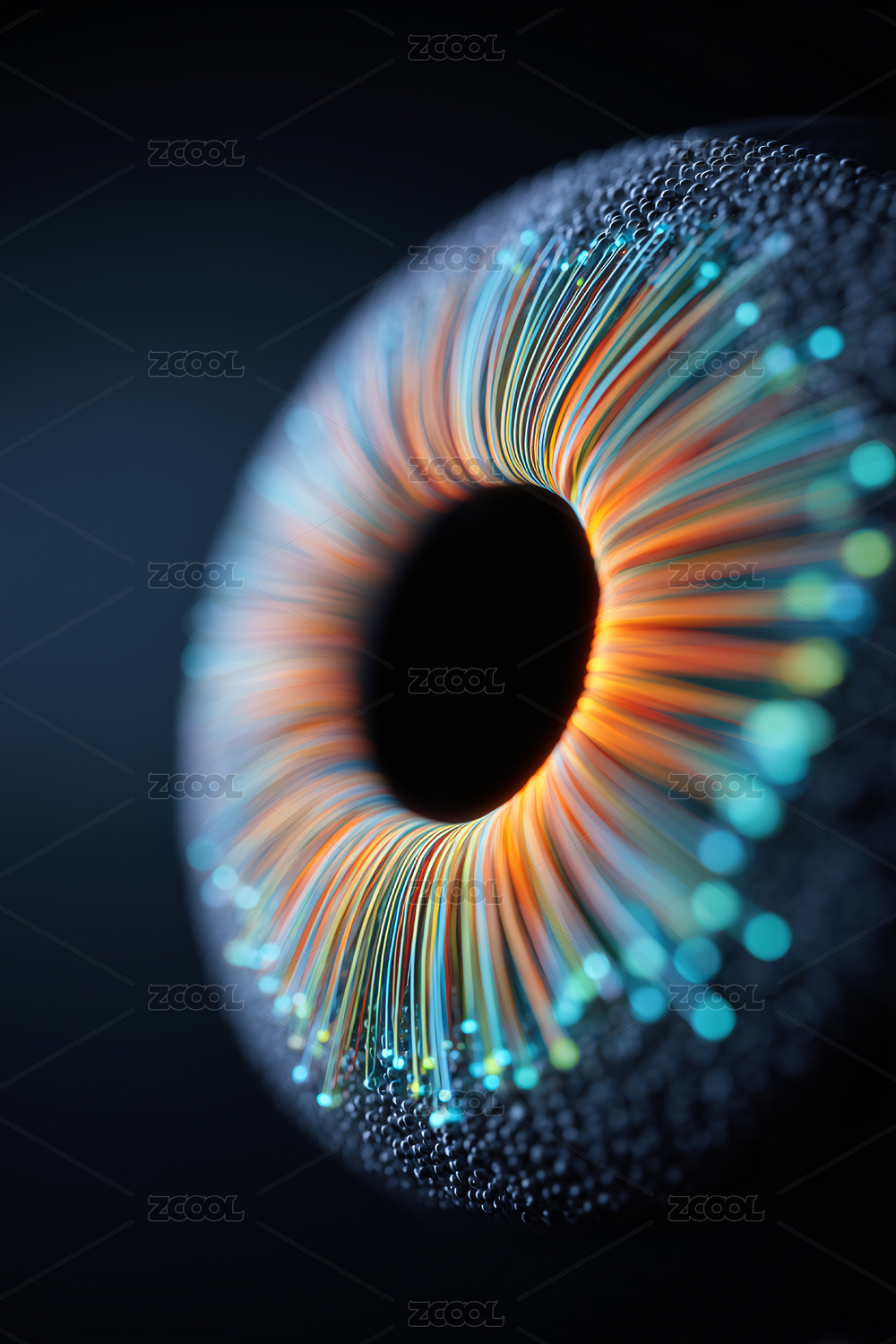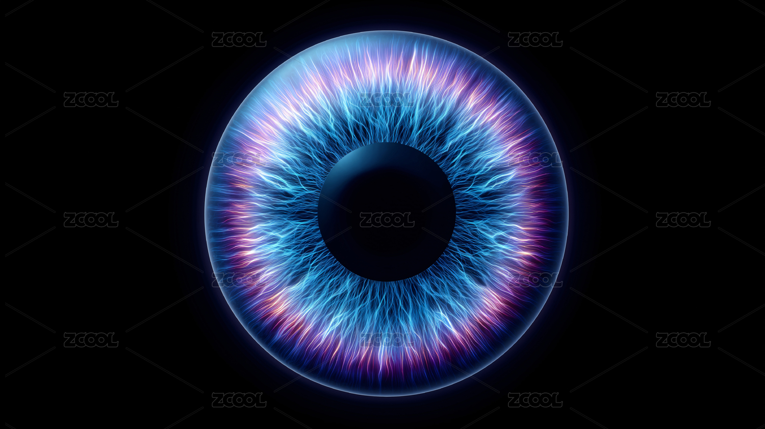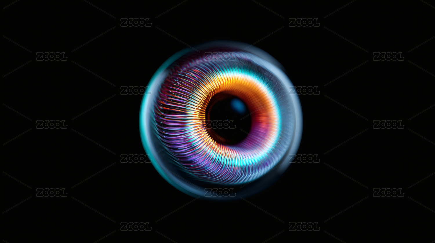 彩色发光线条组成的眼睛虹膜在深色背景上