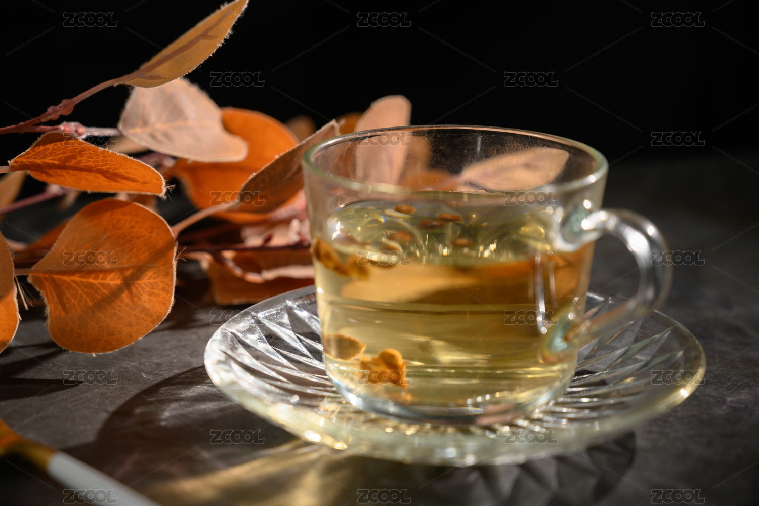 桌面上的杯子里的甘甜可口的秦皮茶