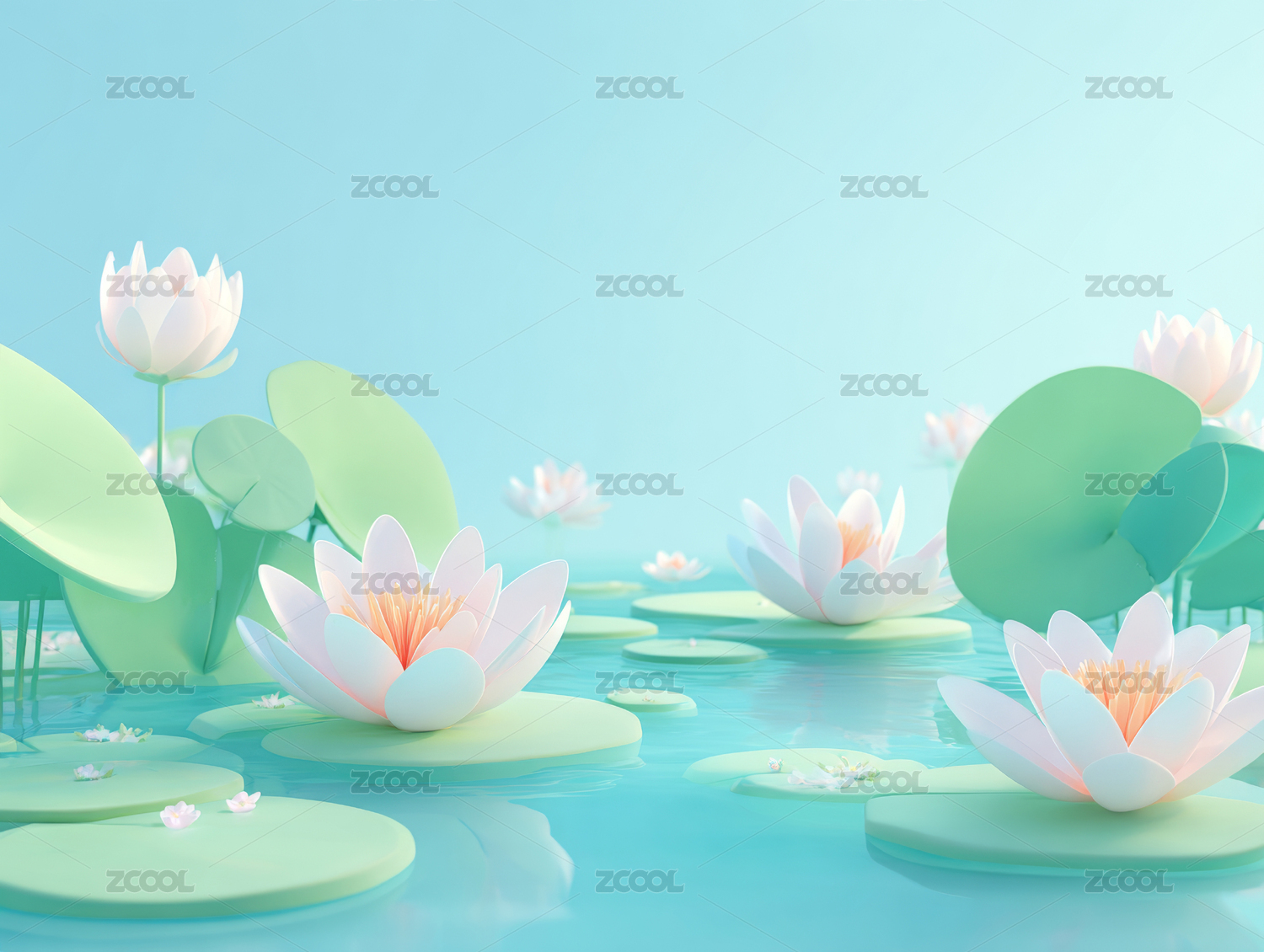 3D卡通荷叶荷花背景