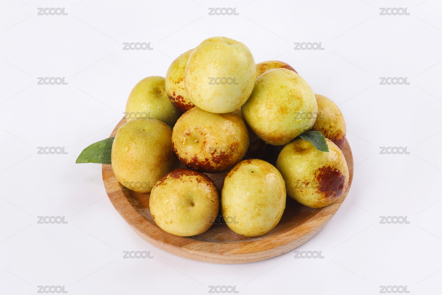大荔冬枣带绿叶子装白盘白底