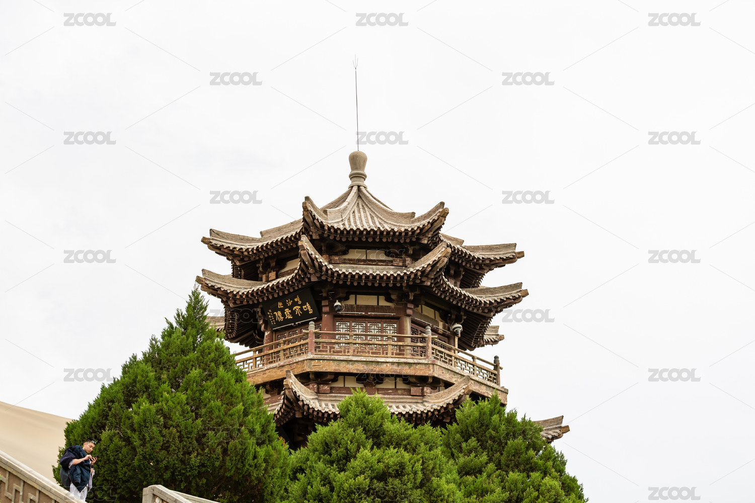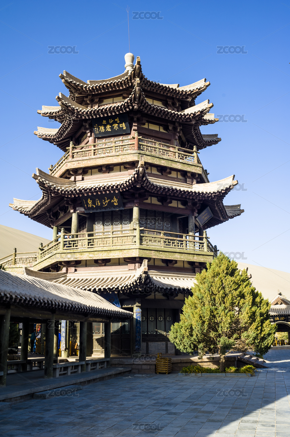 甘肃敦煌鸣沙山月牙泉沙漠月泉阁