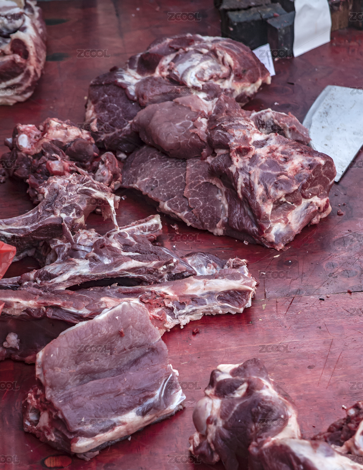 中国农村大集市场上新鲜的牛骨