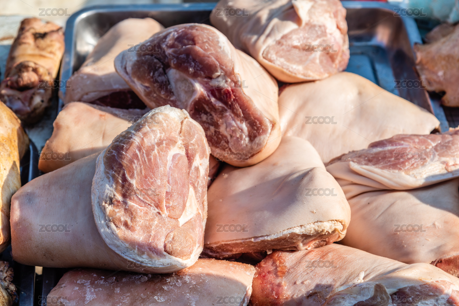 大量各部位的猪肉