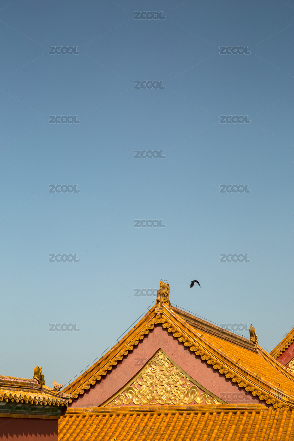蓝天下的北京中山公园宰牲亭屋顶房檐特写