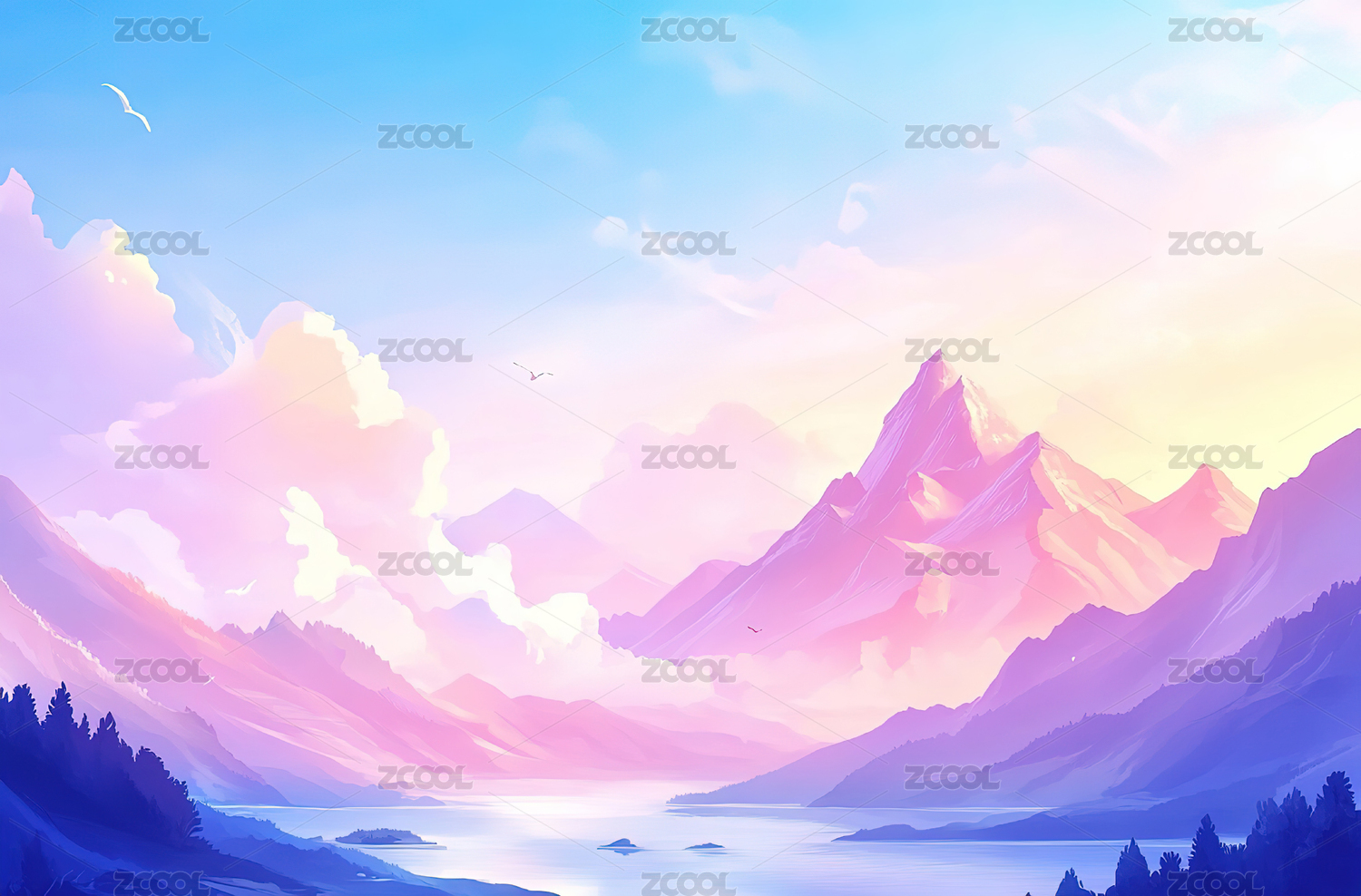 中国水墨山水画松树山峰参天松树诗意水墨画