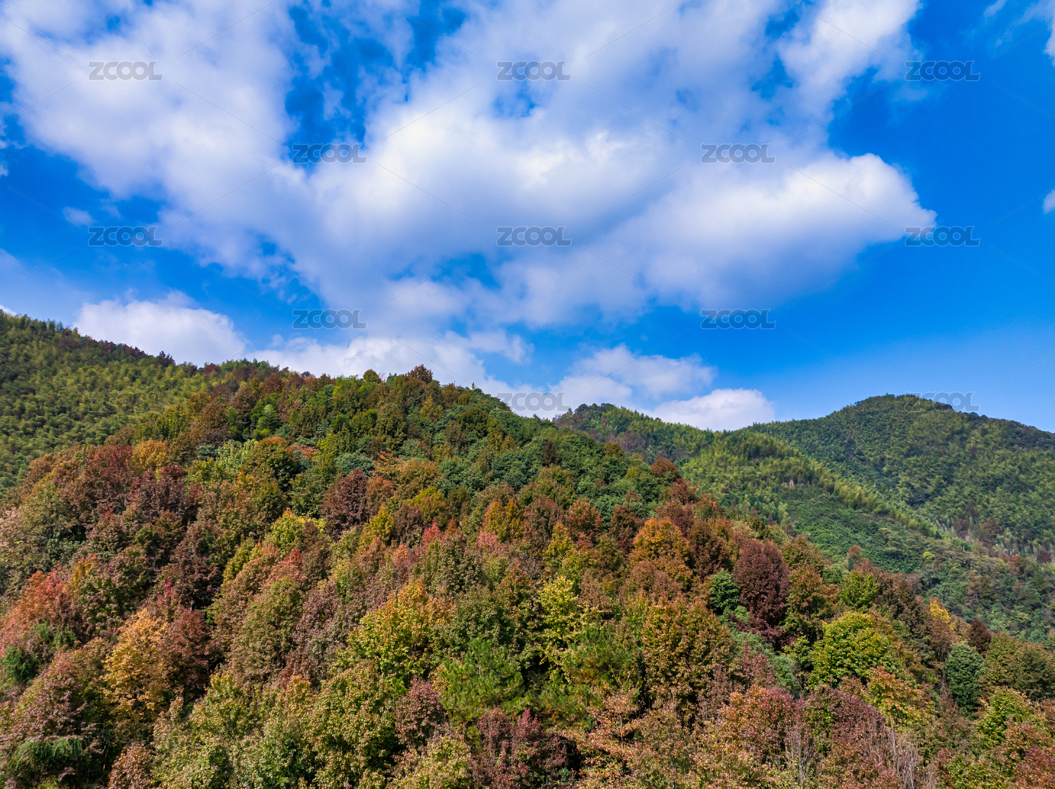诸暨应店街秋季色彩斑斓五彩森林风景航拍