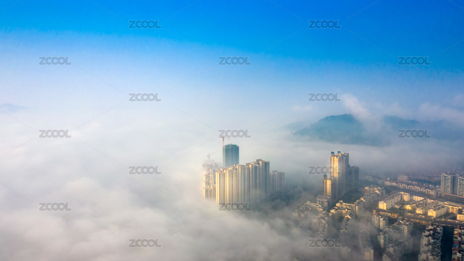 冬天,天空,建筑,城市,无人,雾,高视角,云,城市天际线,建筑外部
