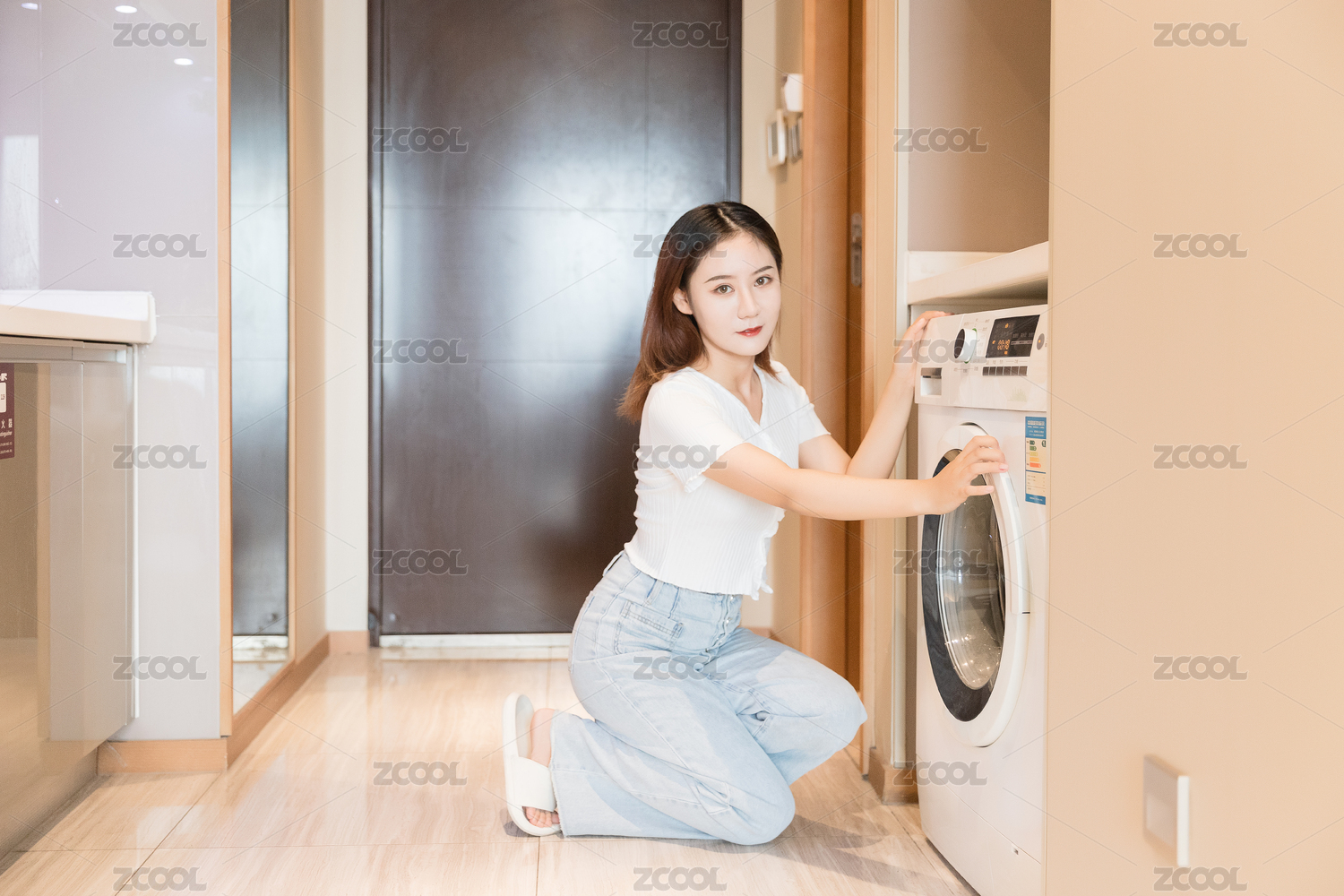 洗衣服,家常杂务,杂物间,家务,洗衣机,一个人,女人,室内,生活方式,东方女性