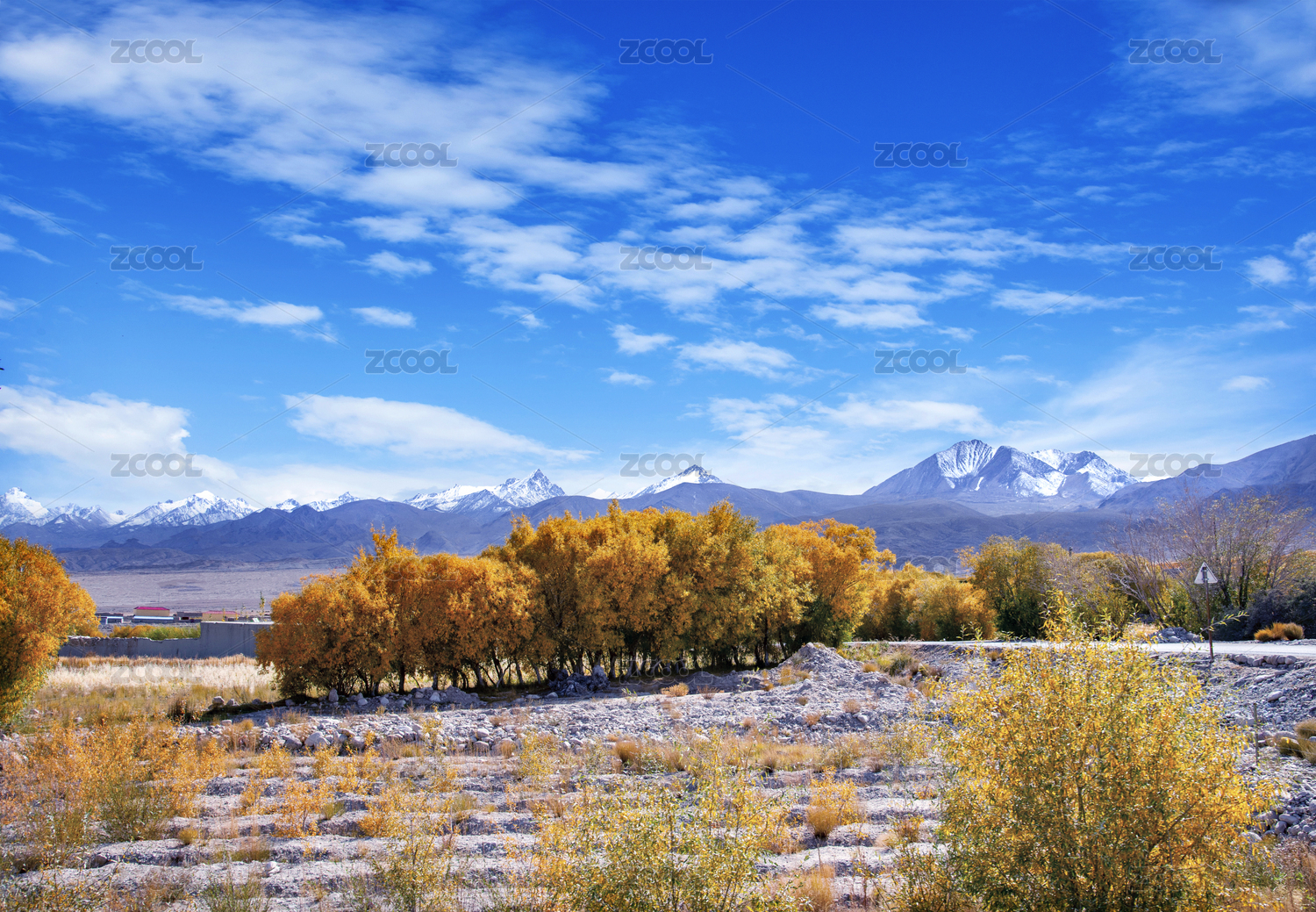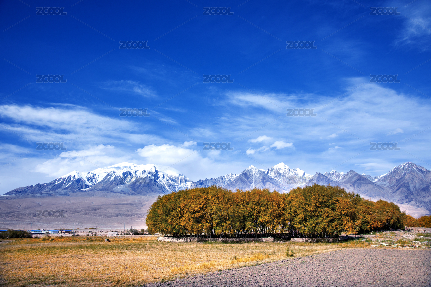 中国新疆塔什库尔干县塔合曼乡雪山下的秋天