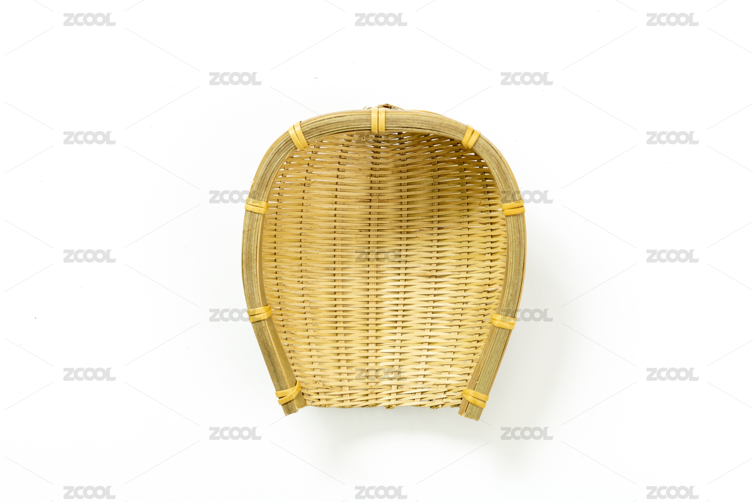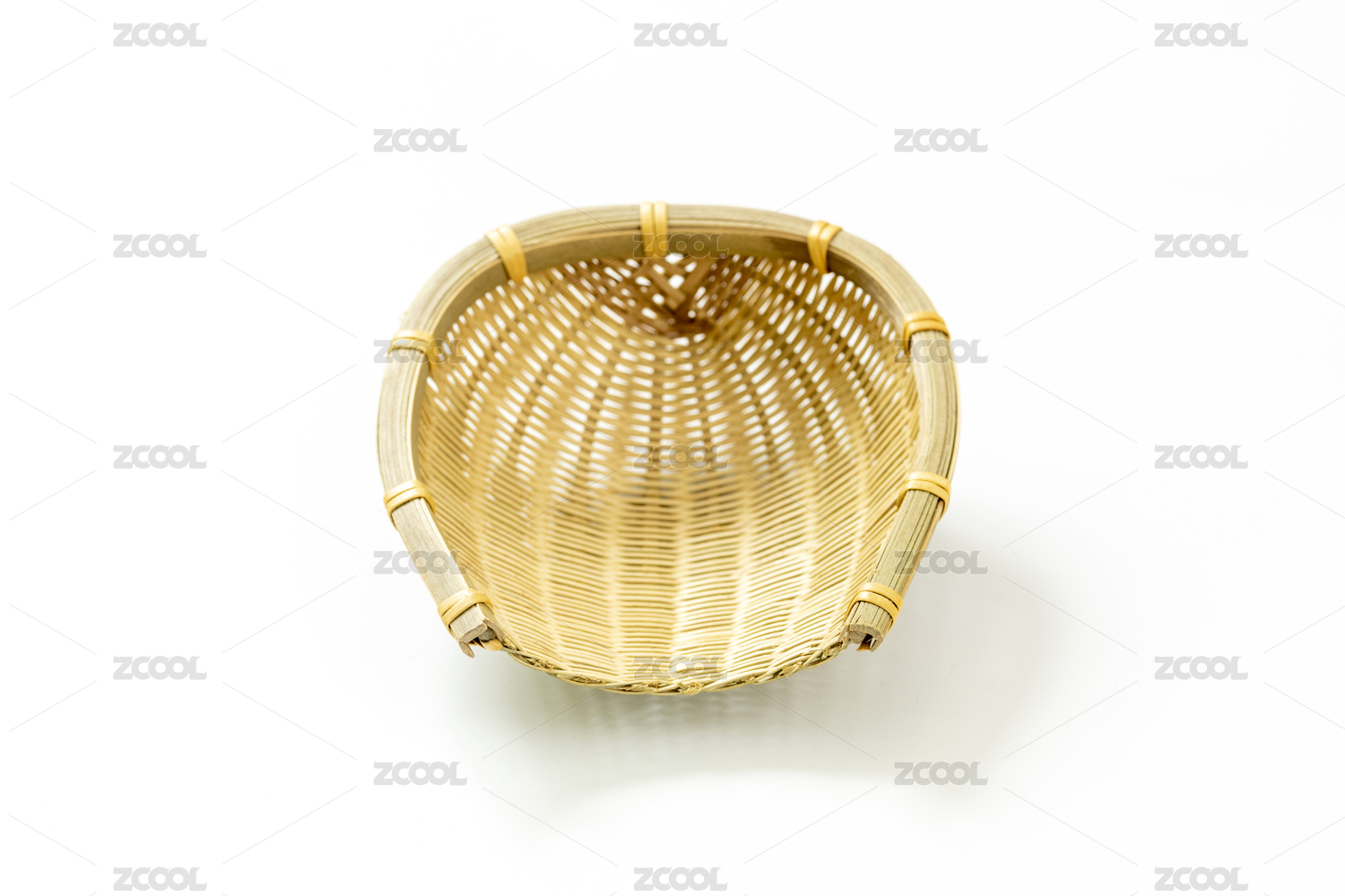 竹编制品竹簸箕特写白色背景
