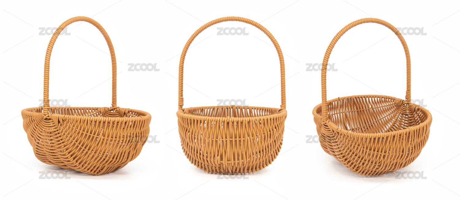 一个空的藤制篮子的白底图