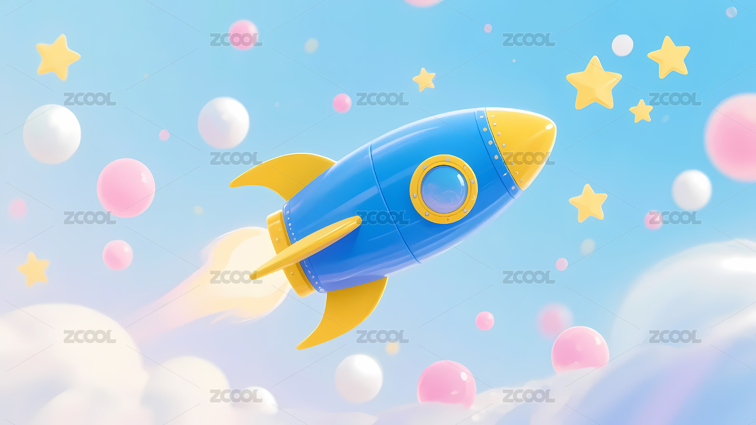 3D,插画,火箭,科技,技术,云,云朵,卡通,发射,太空