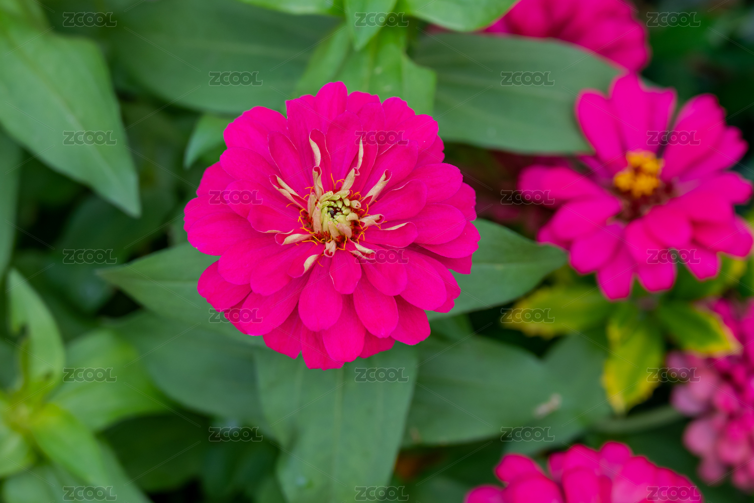 花坛中,盛开的百日菊特写