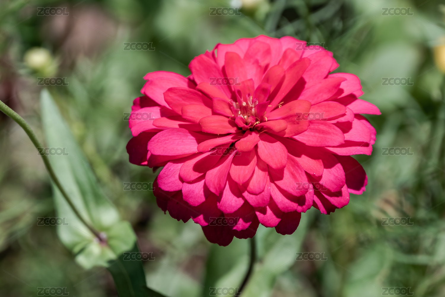 一朵盛开的粉色百日菊特写