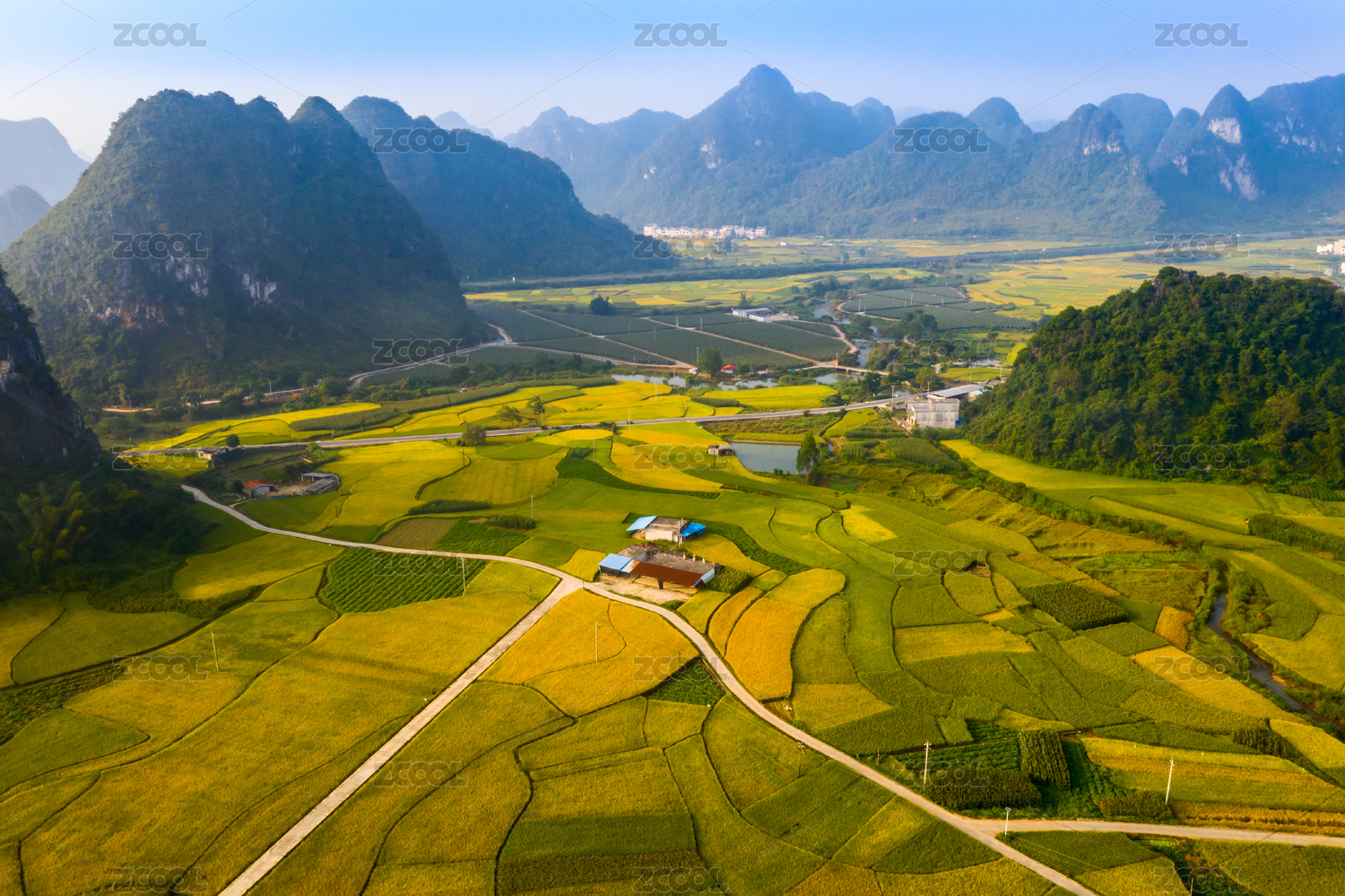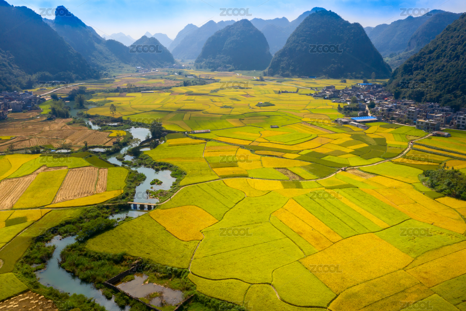 中国,广西,靖西风光,稻田,青山,田园,秋收,河流