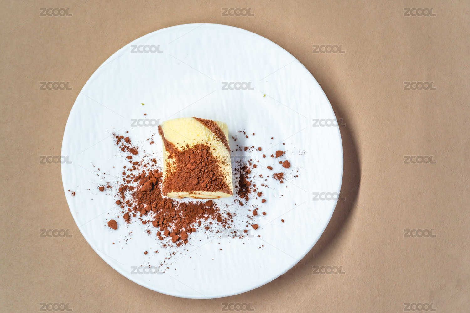 桌上新鲜的提拉米苏蛋糕 白色背景