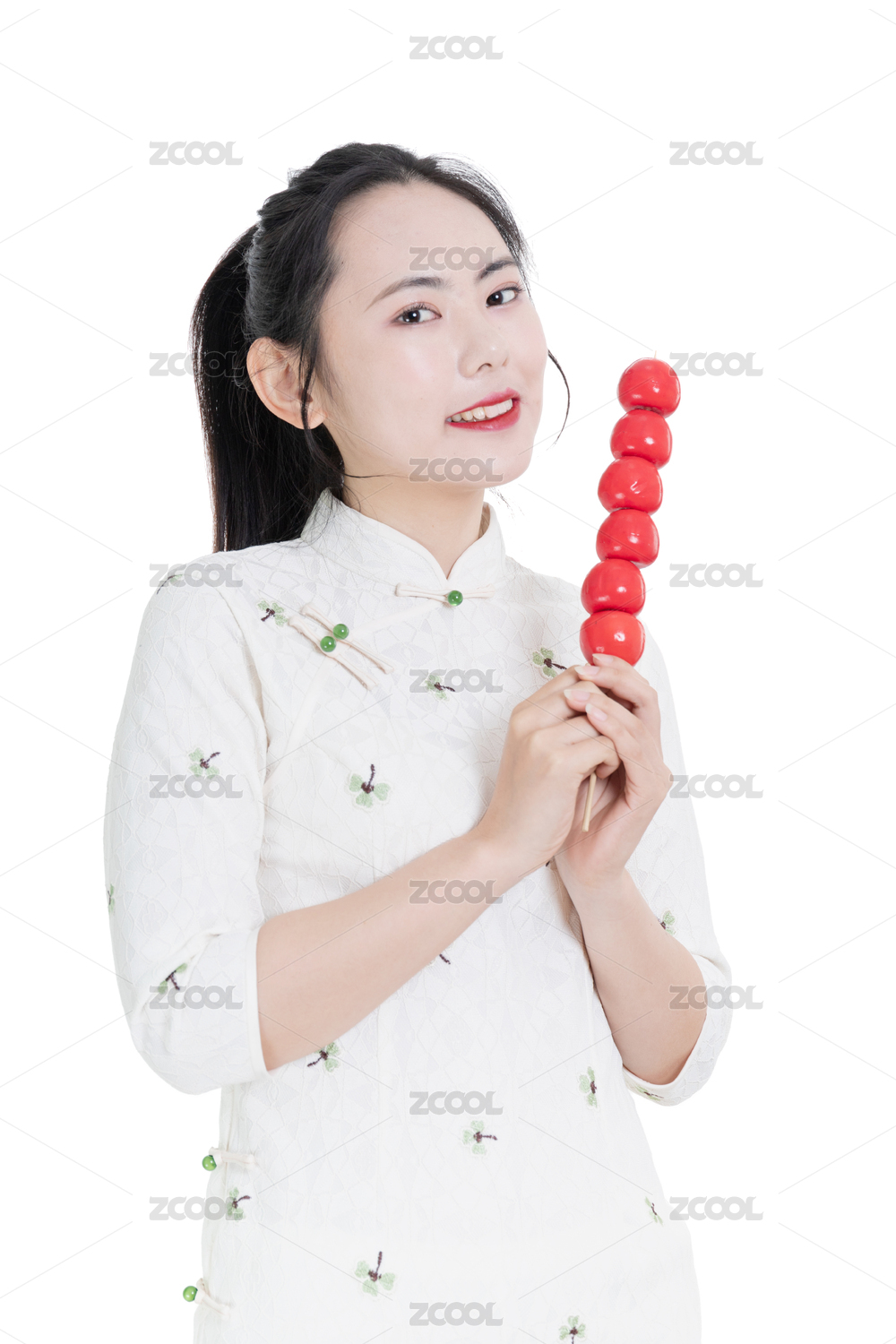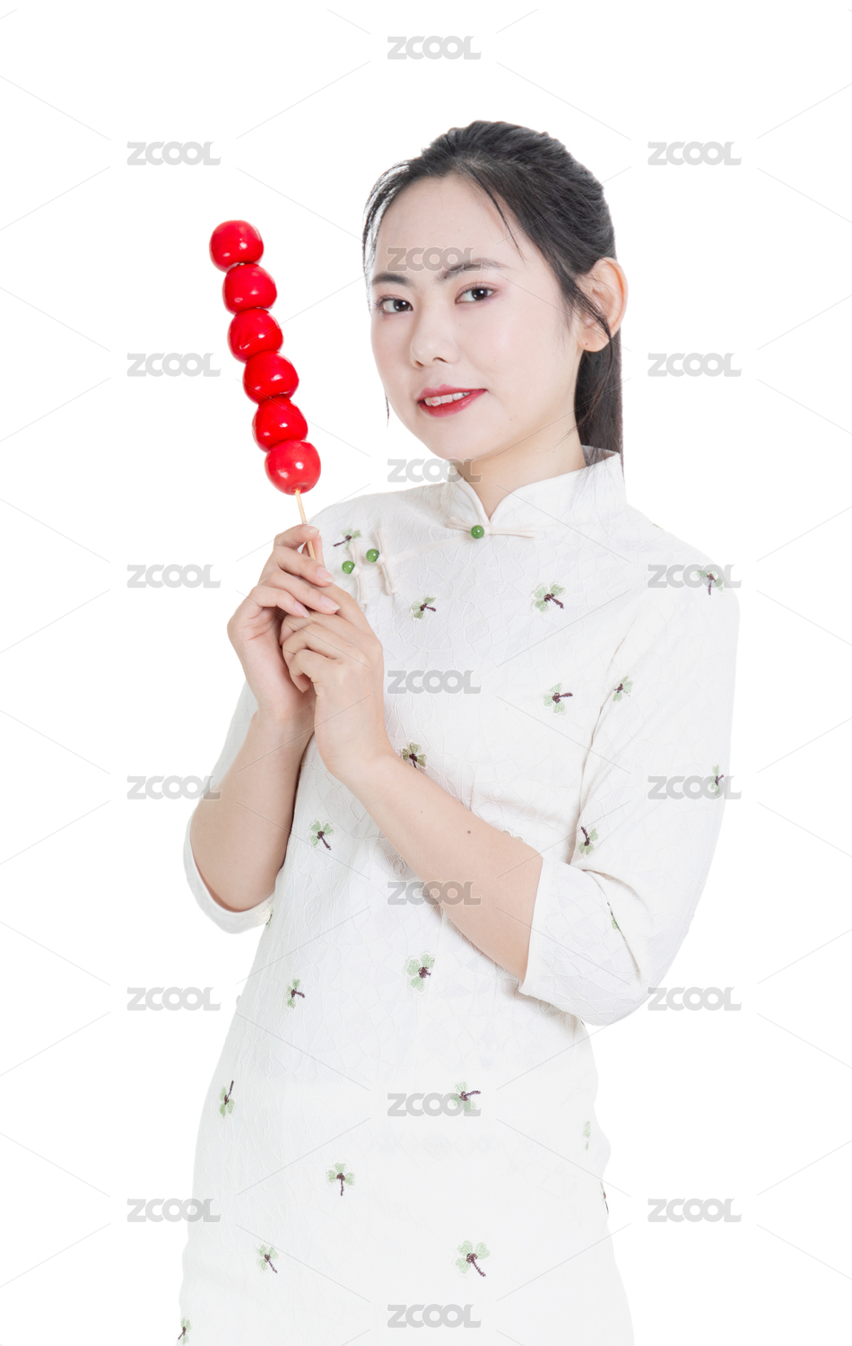 拿着糖葫芦串的旗袍少女
