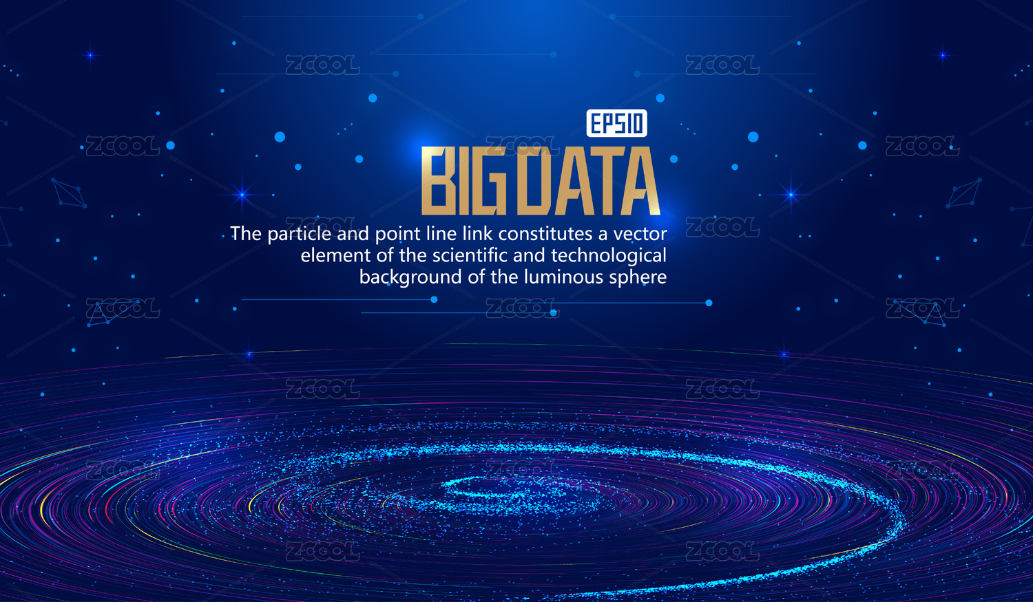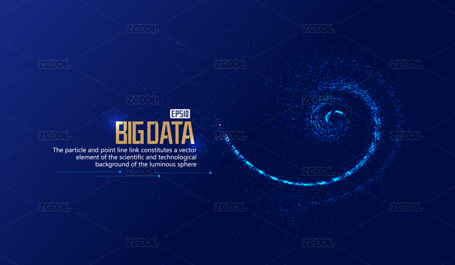 深蓝色宇宙旋涡,粒子构建网络技术大数据抽象矢量背景